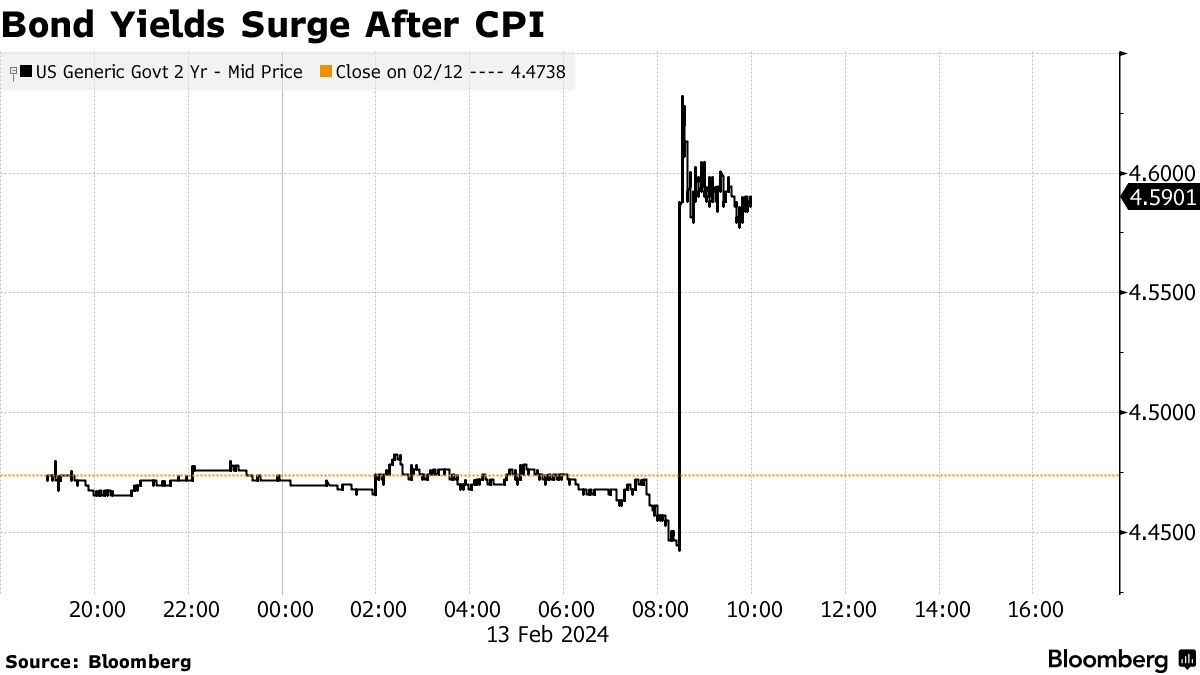 核心消费者价格指数超出预期,创下八个月来最大涨幅,使股票远离历史最高点。随着两年期收益率升至去年12月美联储“转向”之前的最高水平,整个国债曲线上的国债出售。美联储掉期将利率削减的完全定价从6月调整到7月。美国投资级企业债市场的风险感知指标飙升。