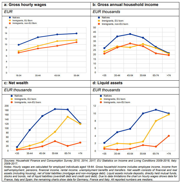 欧元区最大国家超过十分之一的人口是外国出生。但是,他们的生活状况与本国人有很大差异:根据欧洲央行经济学家的新研究,移民的平均工资比本地人低约30%,净财富大约低60%。