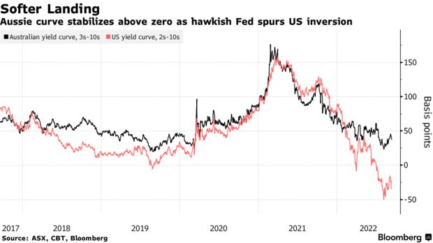 澳大利亚在未来一年内陷入衰退的几率仅为25%,而英国为60%,美国为50%,根据彭博调查数据。