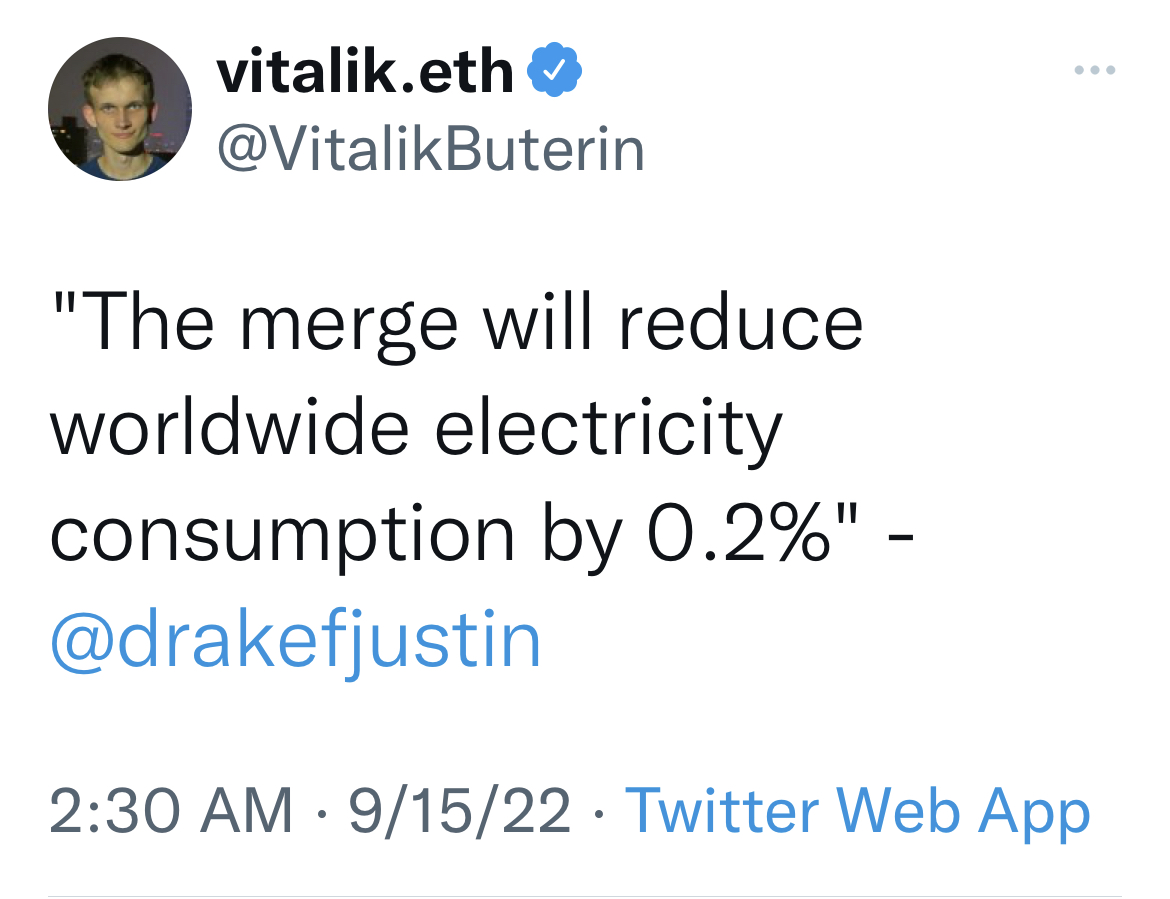 来源: @vitalik.eth](https://twitter.com/VitalikButerin/status/1570299062800510976)但比特币极端主义者表示,反对效仿以太坊的论点可以追溯到代币的起源。工作证明利用经济激励来鼓励矿工保持诚实,通过向他们提供新的比特币代币来奖励他们对有效交易进行排序并拒绝不良交易。另一方面,以太坊的权益证明选项依赖于人们购买大量以太币,然后信任他们不会损害网络。完全不同的两种方式。(尽管要确定的是:验证者可以如果被区块链上的其他人认为造成了伤害,他们的抵押以太币可能会被收回,或者“被削减”)。