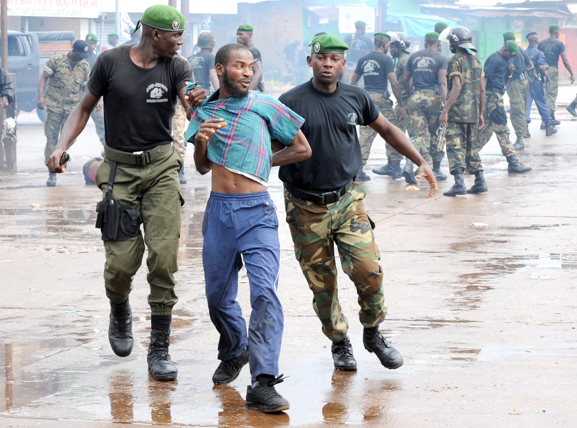 几内亚警方于2009年9月28日在科纳克里逮捕了一名抗议者。
