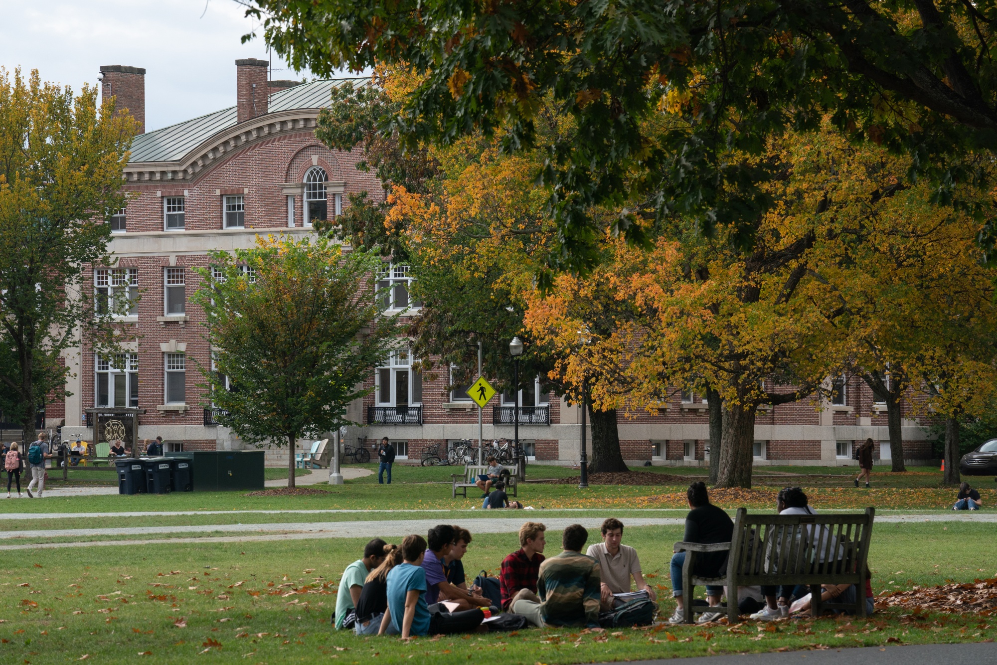 大学校园上的学生。摄影师:Bing Guan/Bloomberg
