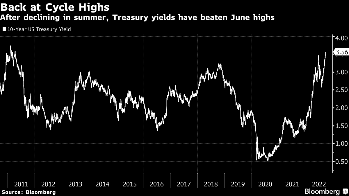 周一,收益率突破了周期高点,达到12年来的峰值,股市自那时起一直在踯躅。尽管在3.50%左右仍存在一些阻力,但本周的美联储会议可能会推动市场决定性地突破先前的周期高点。
