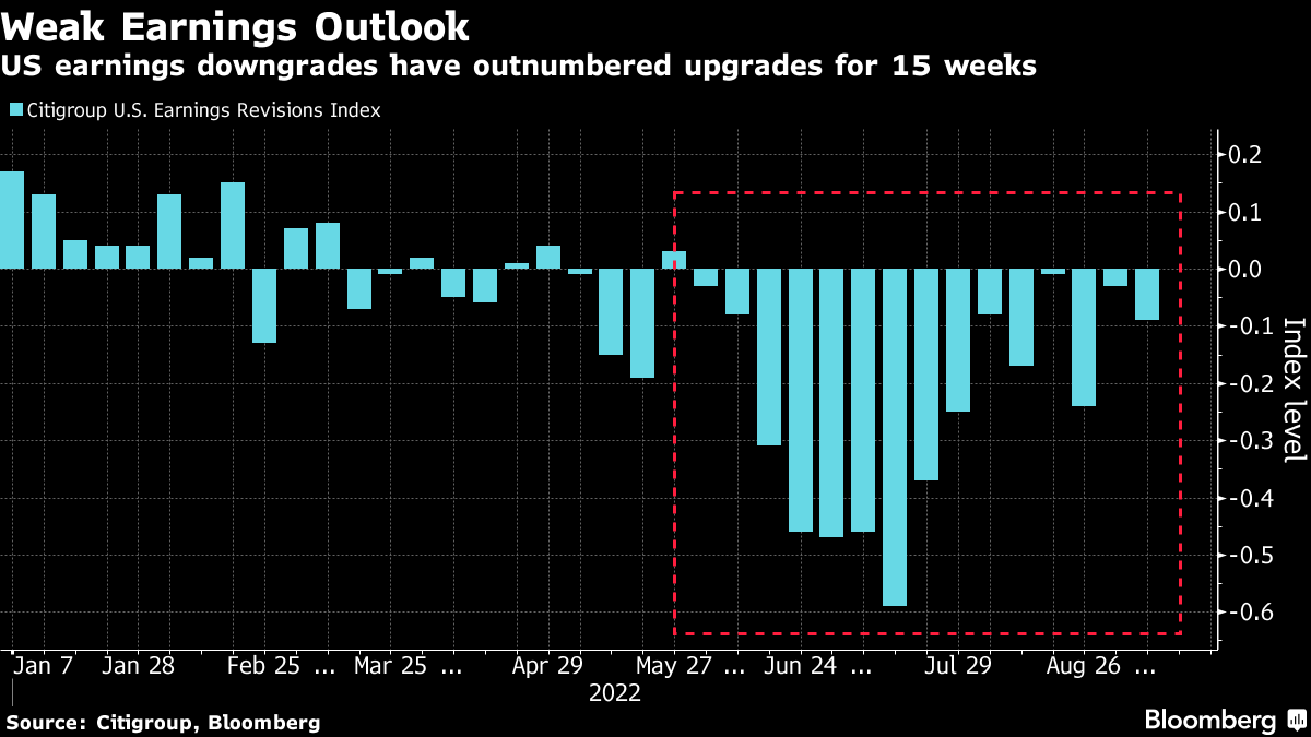 一些分析师预测,在连续四个季度下滑之后,标普500指数的盈利将最终开始增长。但如果盈利下调继续超过上调甚至再持续几周,我们可能会看到股价重新测试六月低点。比市场预期更加鹰派的美联储可能会成为催化剂。