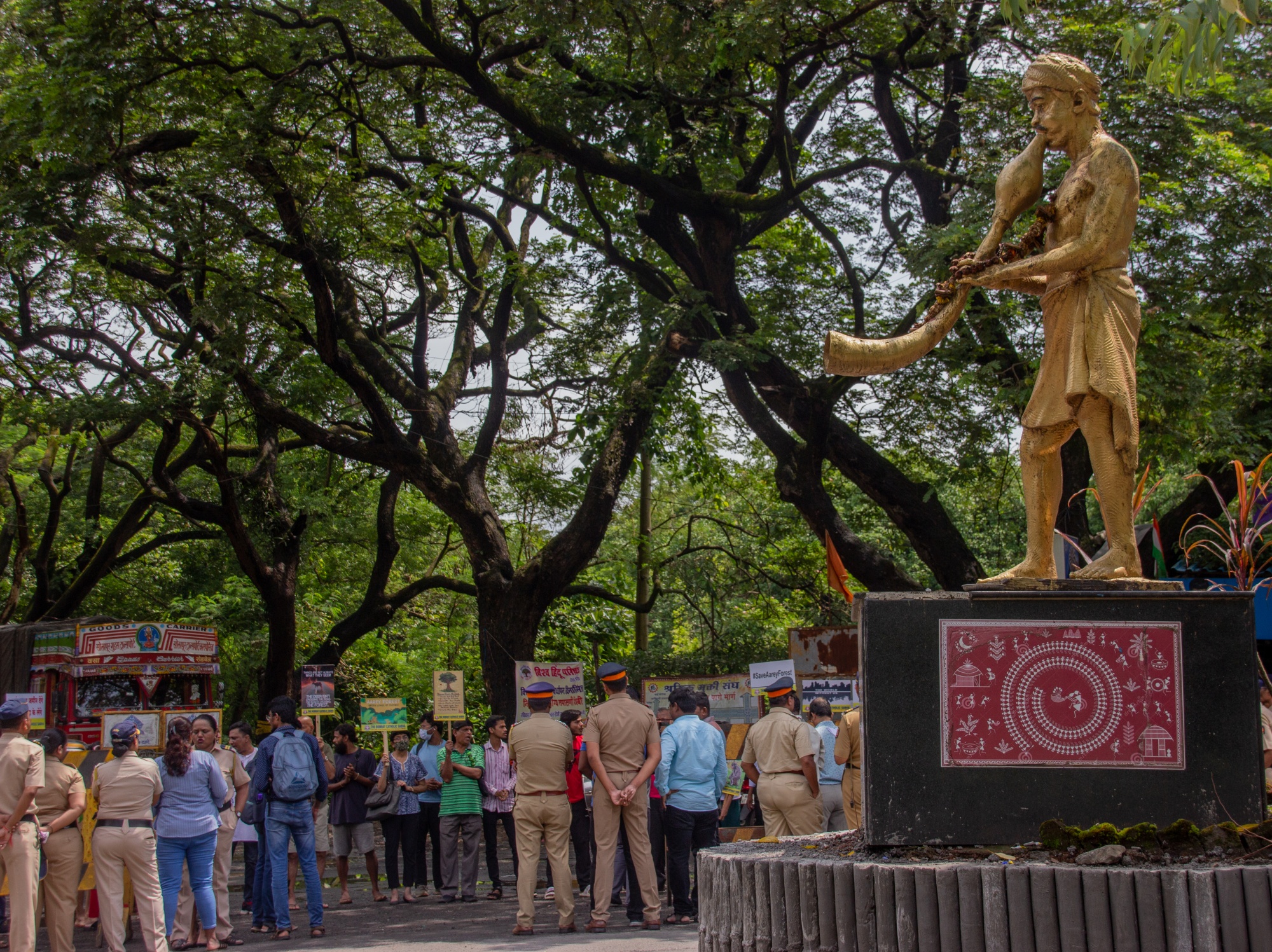 “Azadi”(印地语,意为自由)的呼喊声与鼓声的有节奏的敲击声交相呼应,抗议者聚集在孟买一片茂密的树林中。