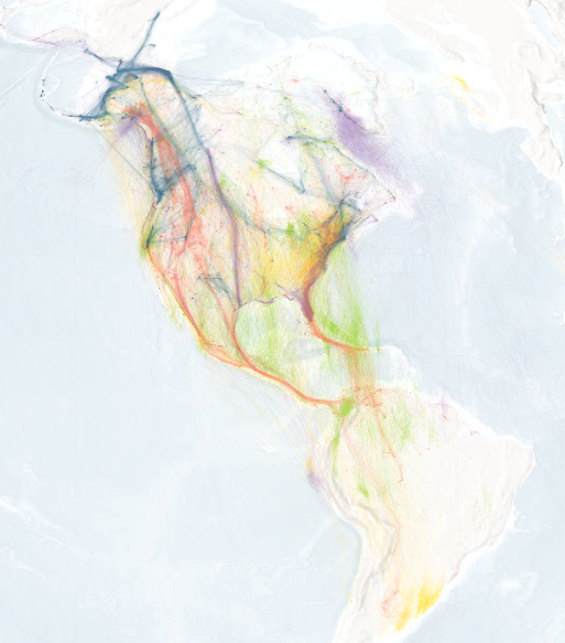 “仅在首页上,您就可以看到超过9,000条个体鸟类的迁徙轨迹。仅仅查看原始数据,我们就可以看到这些令人难以置信的鸟类如何跨越半球的迁徙模式。”