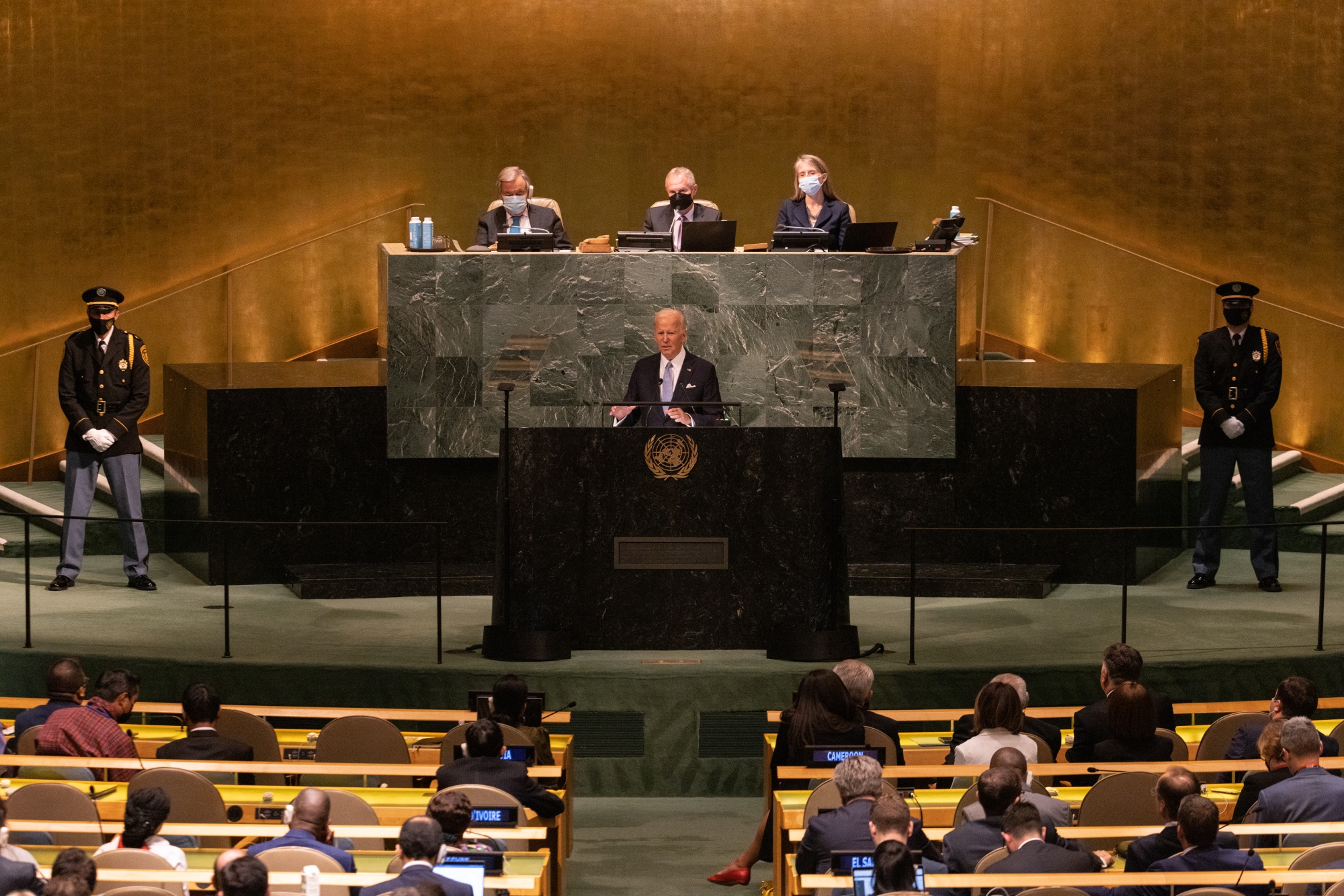 美国总统乔·拜登在联合国发表讲话,谴责俄罗斯入侵乌克兰以及克里姆林宫不断升级的战争行动。