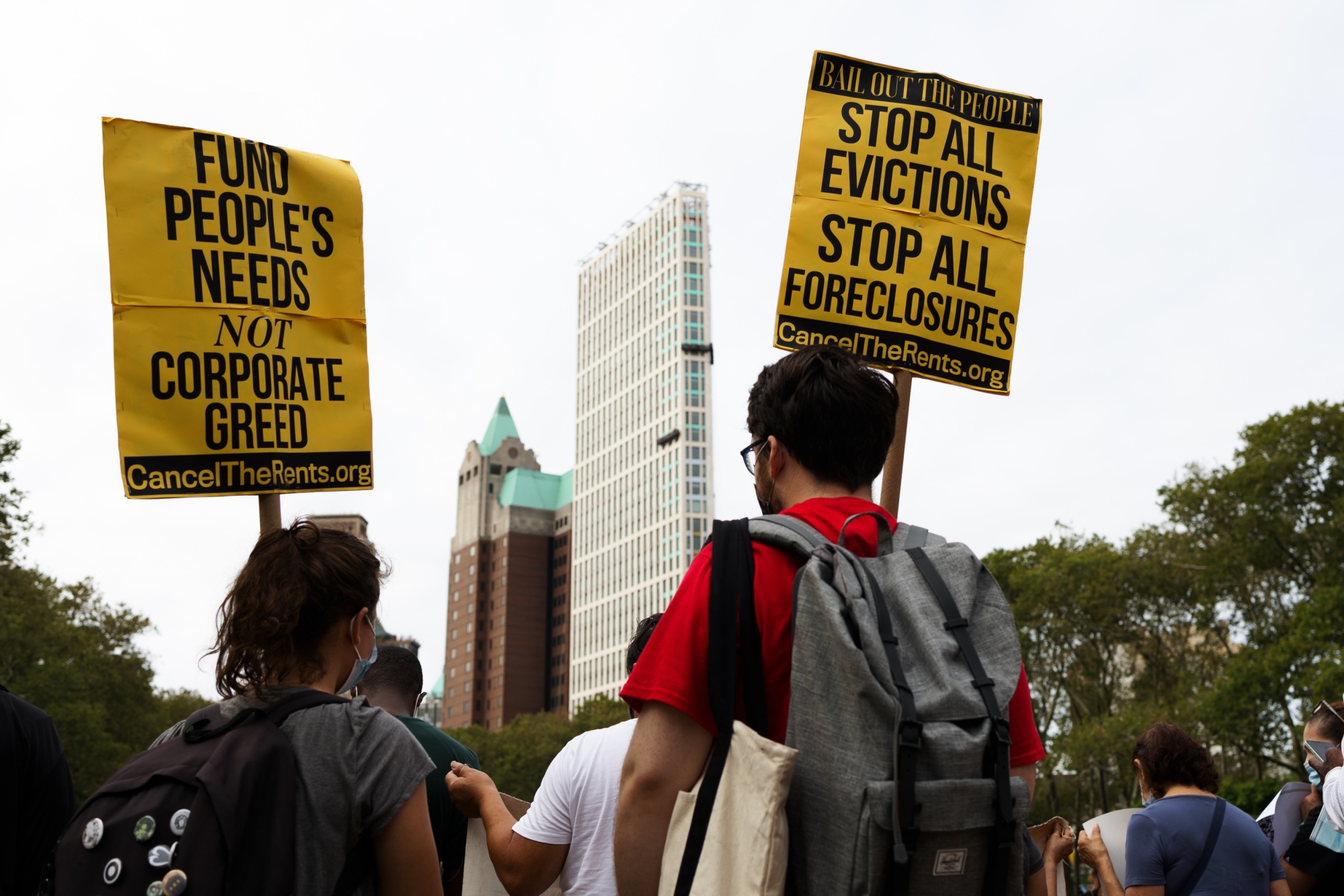 示威者在美国纽约布鲁克林区举行“驱逐暂缓延长”集会,日期为2021年8月19日星期四。有争议的规定原定持续到8月31日,如果租户声称面临与Covid相关的财务或健康困境,则阻止所有驱逐程序。摄影师:Paul Frangipane/Bloomberg