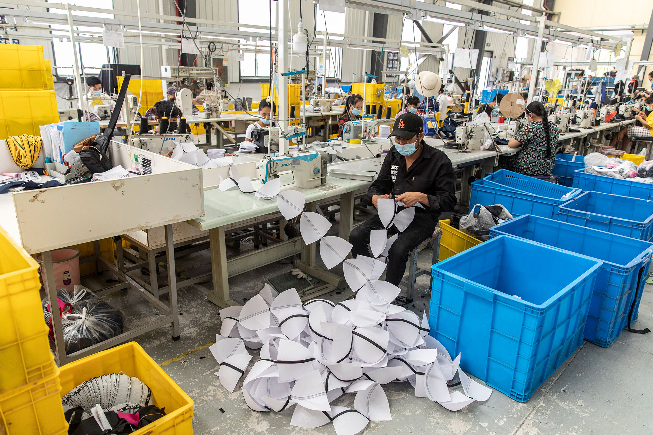 Everbright Headwear的工厂车间。摄影师:Qilai Shen/Bloomberg