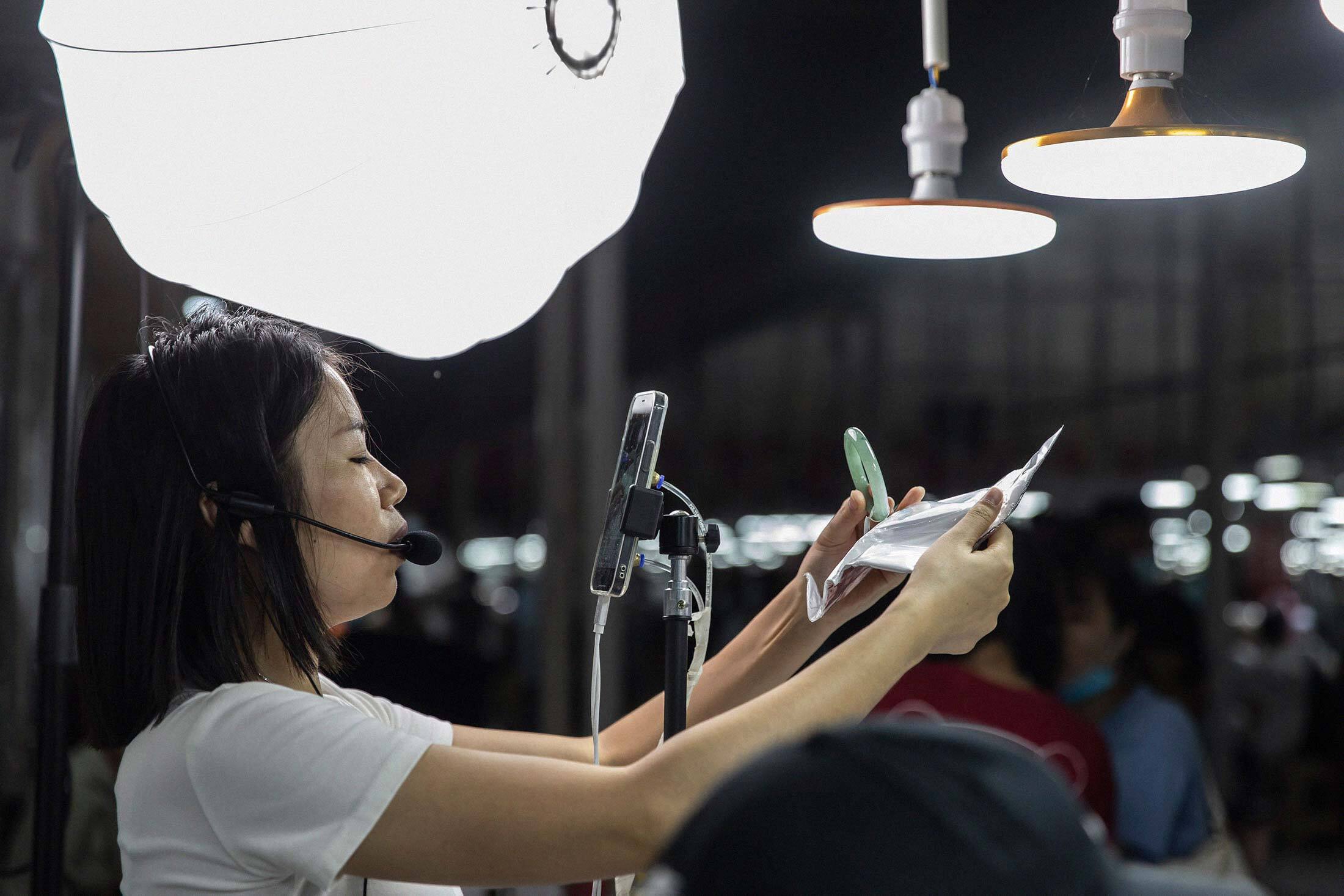 在洋洋好市场直播宝石交易。摄影师:钱来沈/彭博社