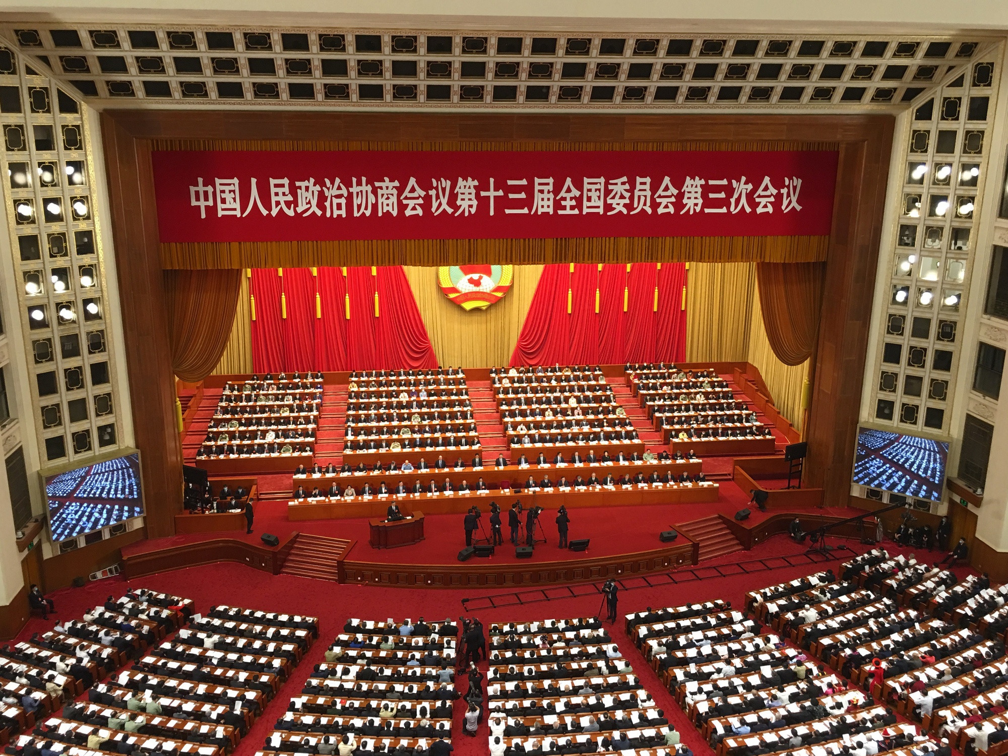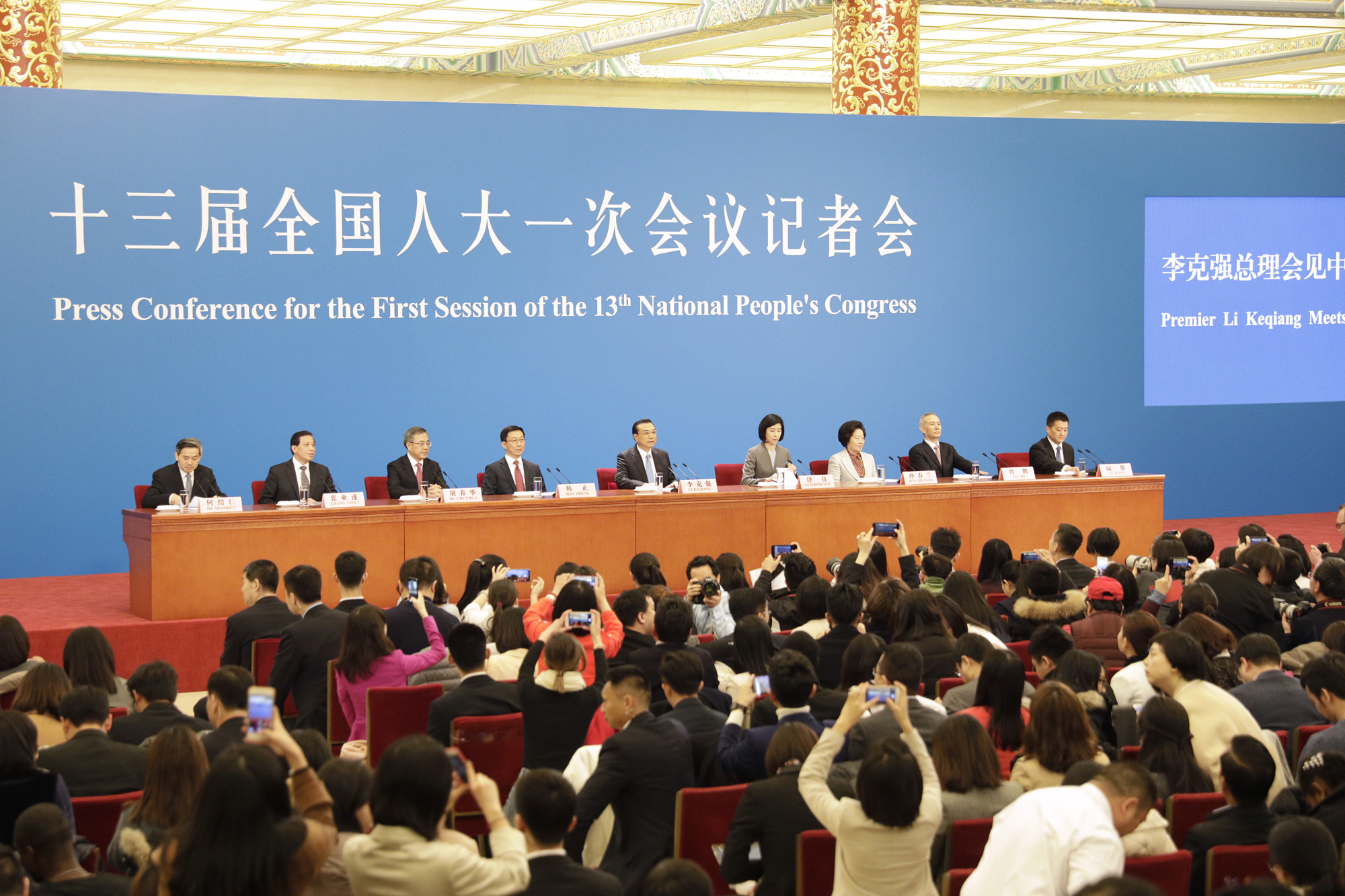 习近平和其他中国官员出现在北京人民大会堂,预计十月份共产党代表将聚集在这里举行每五年一次的大会,确定领导职位。
