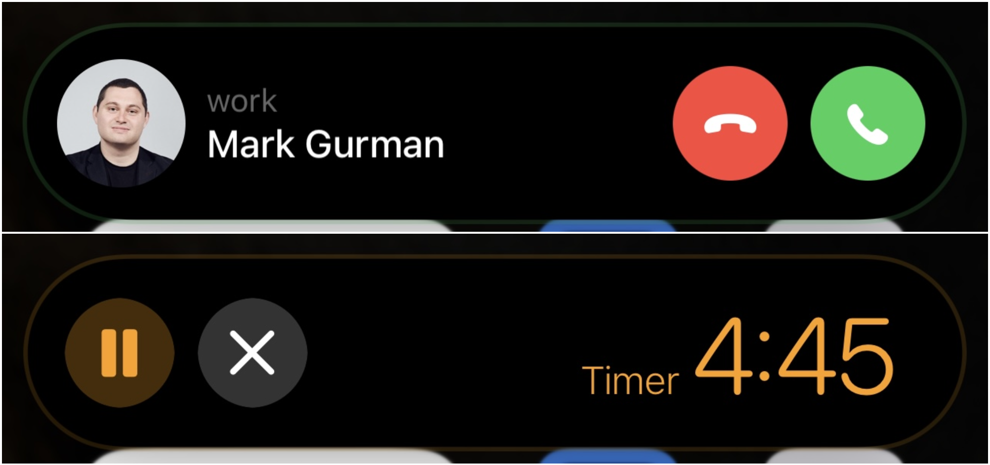 动态岛中的电话和定时器。来源:Mark Gurman在营销和在线热度方面,动态岛是iPhone最大的新功能。让我们面对现实:苹果应该受到很多赞扬,因为他们将凹槽——iPhone最不吸引人的元素之一——转变为用于警报和后台应用的流畅界面。