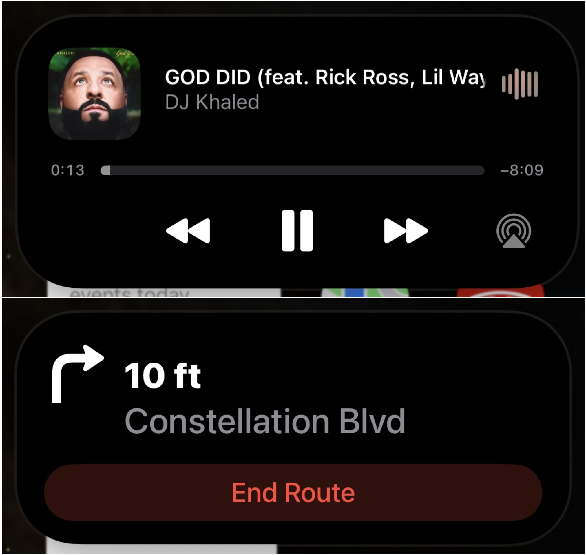 动态岛中的音乐控制和地图导航。来源:Mark Gurman虽然这个界面很方便,但与之前的iOS界面相比,在警报和音频方面并没有太大变化。以前,用户可以通过控制中心或锁定屏幕相当快速地调整音频。他们还会在屏幕顶部得到地图导航的覆盖。