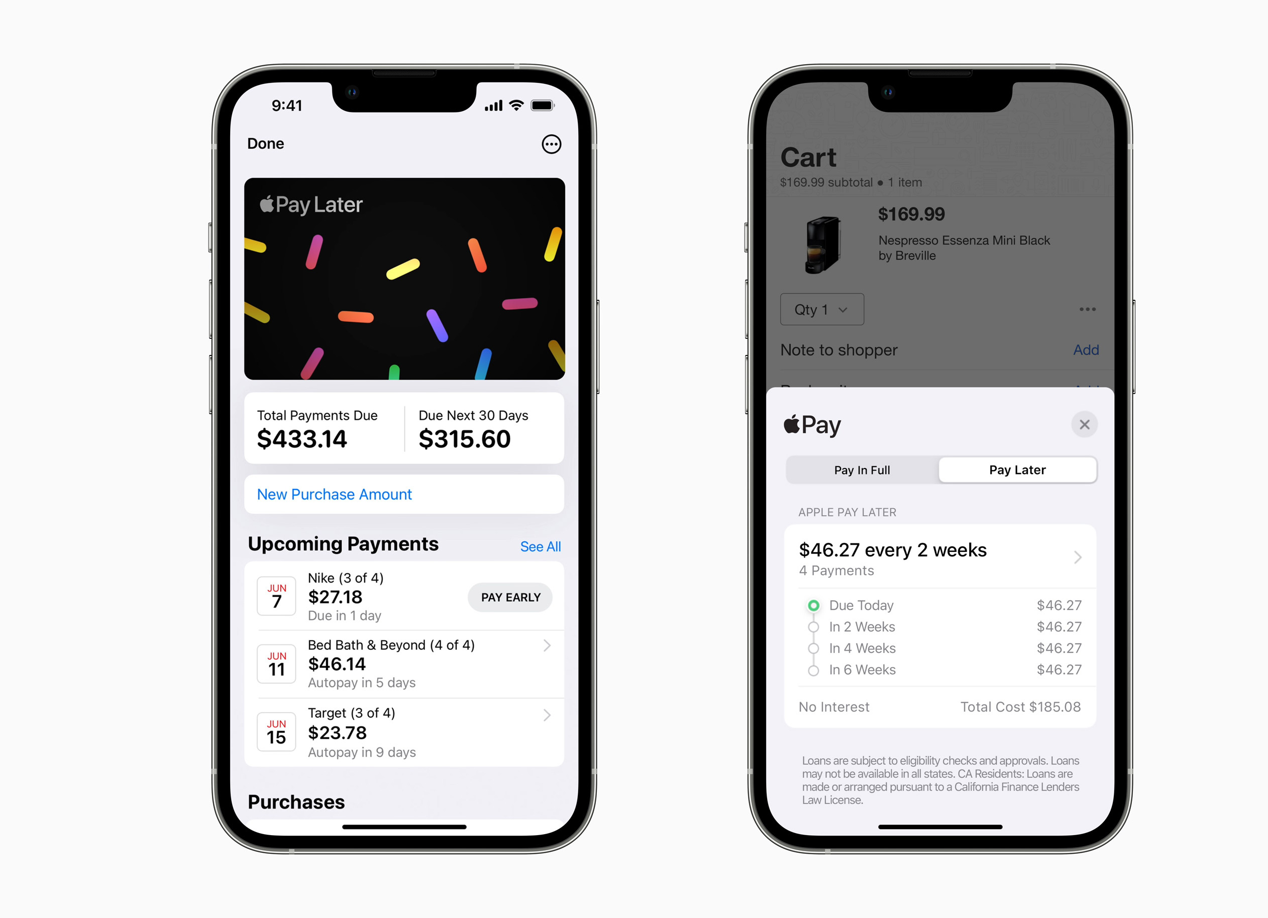 Apple Pay Later。来源:Apple Inc.**Apple Pay Later即将推出。**与iOS 16相关的更引人注目的公告之一是Apple Pay Later,这一功能将公司推入“现在购买,以后付款”市场,与Affirm Holdings Inc等竞争对手并驾齐驱。该服务允许将Apple Pay交易分成六周内的四期付款,使大额购买更容易处理。
