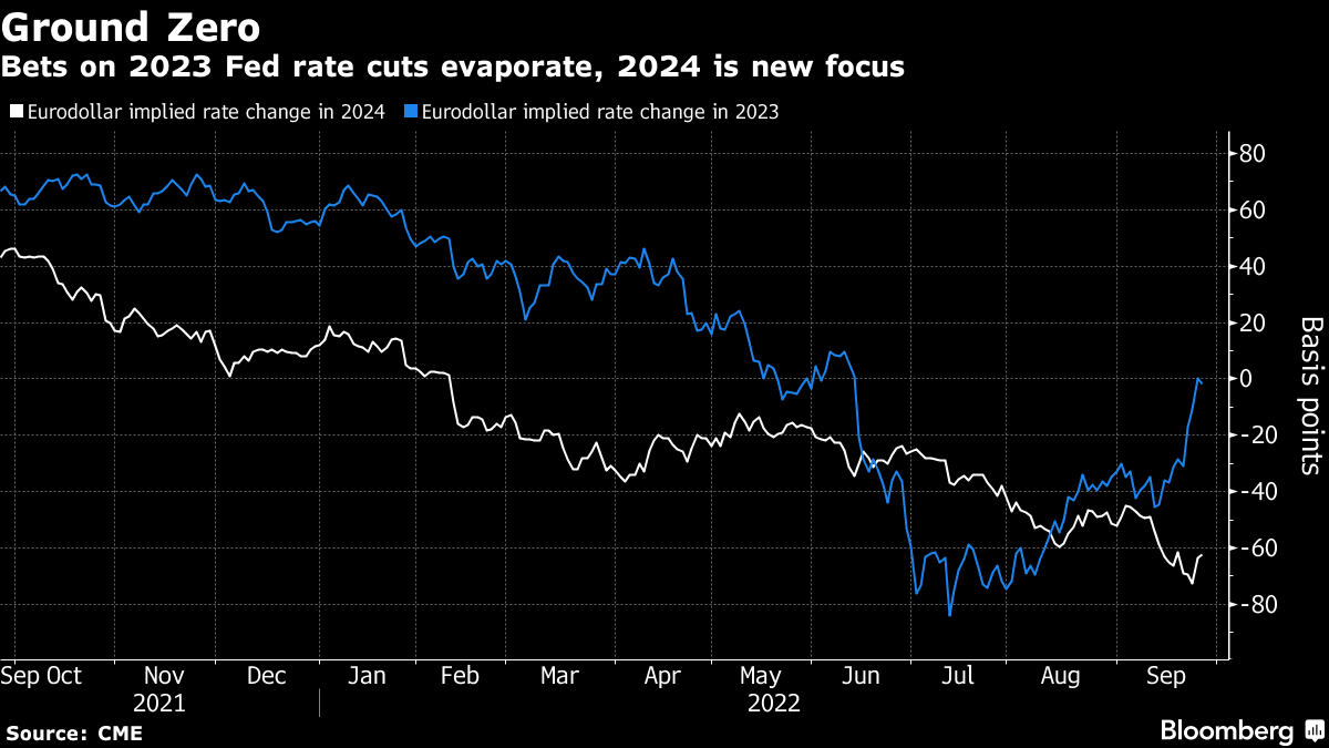 英国政府削减税收的决心助长了火势,但今年股票和债券暴跌的主要推手仍然是疫情后通胀激增以及美联储和其他中央银行在迟来的情况下迅速加快加息步伐,意识到迫切需要遏制需求。 现在的欧元美元市场告诉投资者要等到2024年才能从货币紧缩中获得缓解。 这看起来像是一个漫长而艰难的等待。