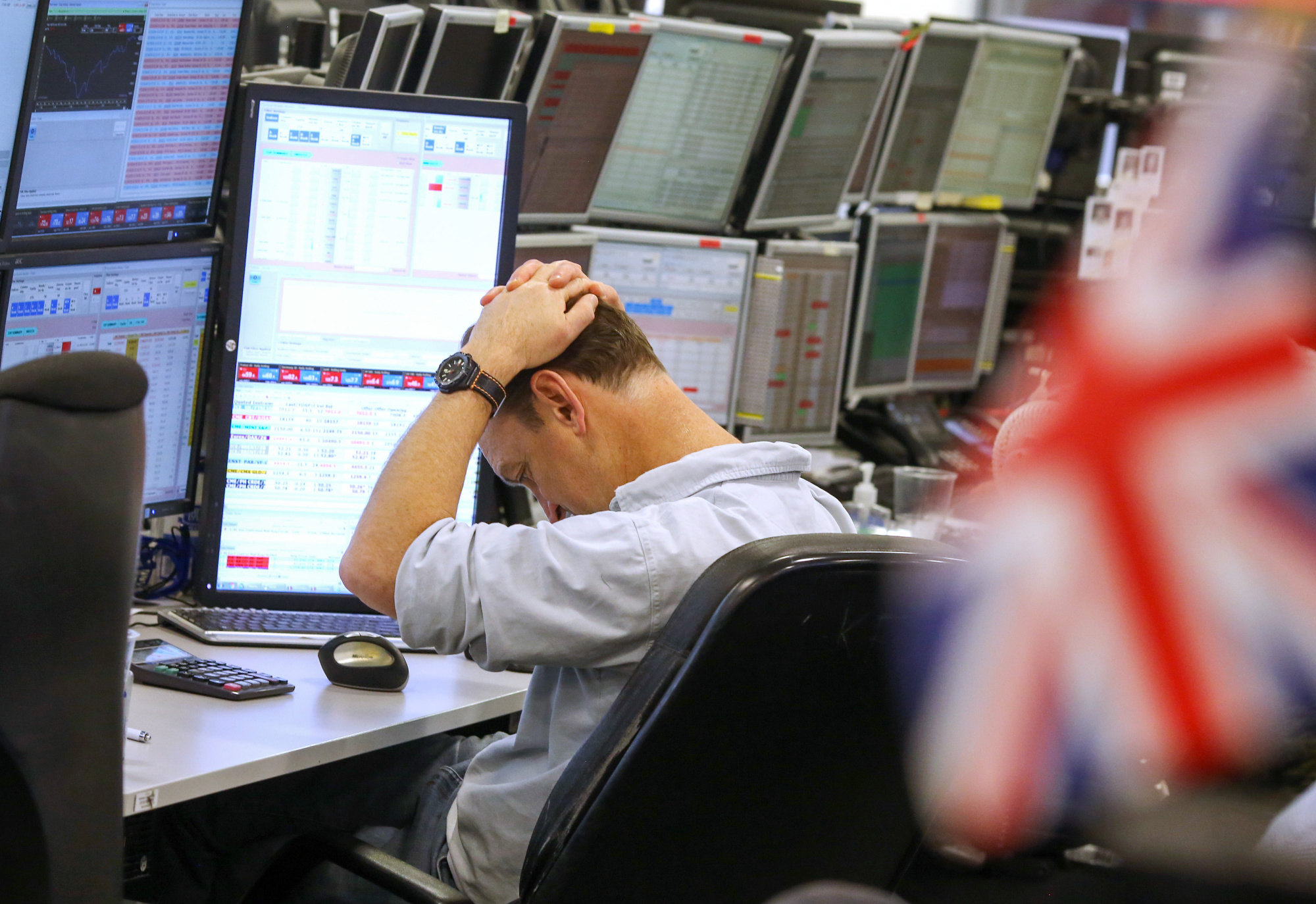 一名交易员在伦敦ETX Capital,一家差价合约经纪商,监控电脑屏幕上的金融数据时停顿。