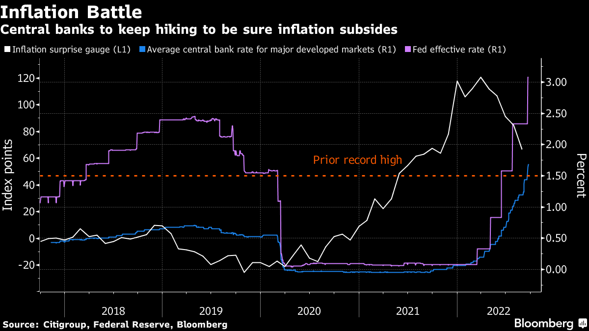 隔夜,一大批美联储发言人发出了明确的信息 — 尽管资产价格暴跌,全球各地央行过快过猛地行动引起了越来越多的担忧,但利率将会上升。圣路易斯联邦储备银行行长詹姆斯·布拉德维持了他的反通胀立场,并警告称美国决策者的信誉岌岌可危。投资者希望央行会因为初现供应冲击和其他成本压力有所缓解的迹象而转向放缓加息步伐的希望破灭了。
