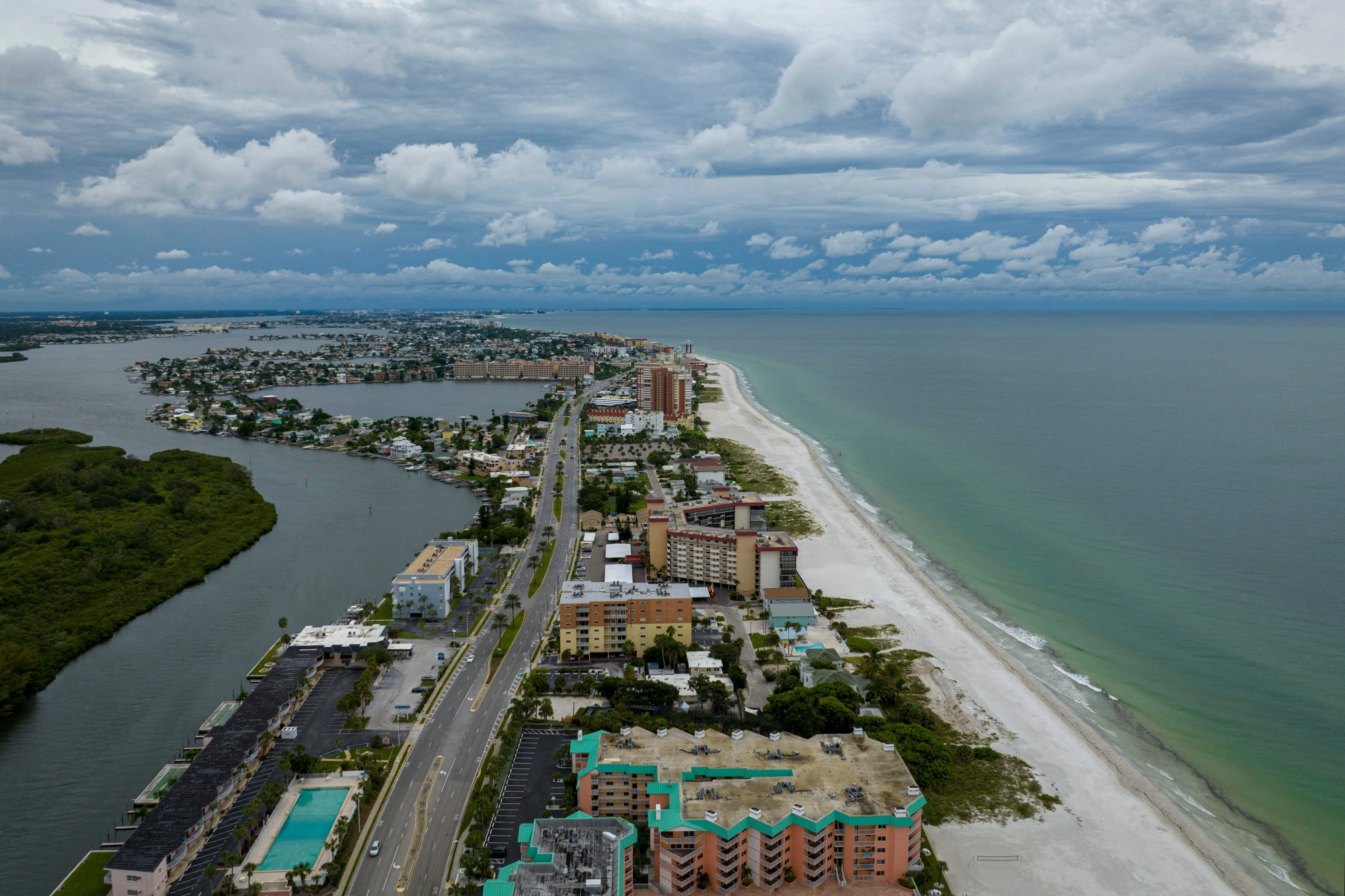 佛罗里达州皮内拉斯县印第安雪岸海滨小镇。坦帕地区的许多发展都集中在易受攻击的沿海地区。摄影师:Ricardo Arduengo/AFP via Getty Images正如坦帕湾时报今年早些时候报道的那样,在这种情况下,并不一定需要一场严重的风暴就能造成广泛的破坏。根据报告,每九个坦帕的房产中就有一个可能在一场1级飓风中遭受洪水。皮内拉斯县(人口100万)中每五个房产中就有一个在1级飓风中有洪水风险。伊恩预计在本周三晚到周四登陆佛罗里达时将比那强大得多,登陆地点在坦帕湾和夏洛特港之间。