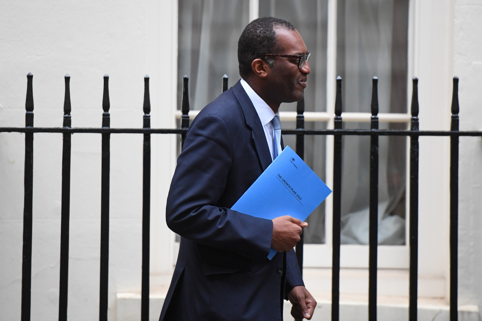 Kwasi Kwarteng 离开Downing Street 11号前往议会在9月23日提出英国的财政计划。摄影师:Chris J. Ratcliffe/Bloomberg