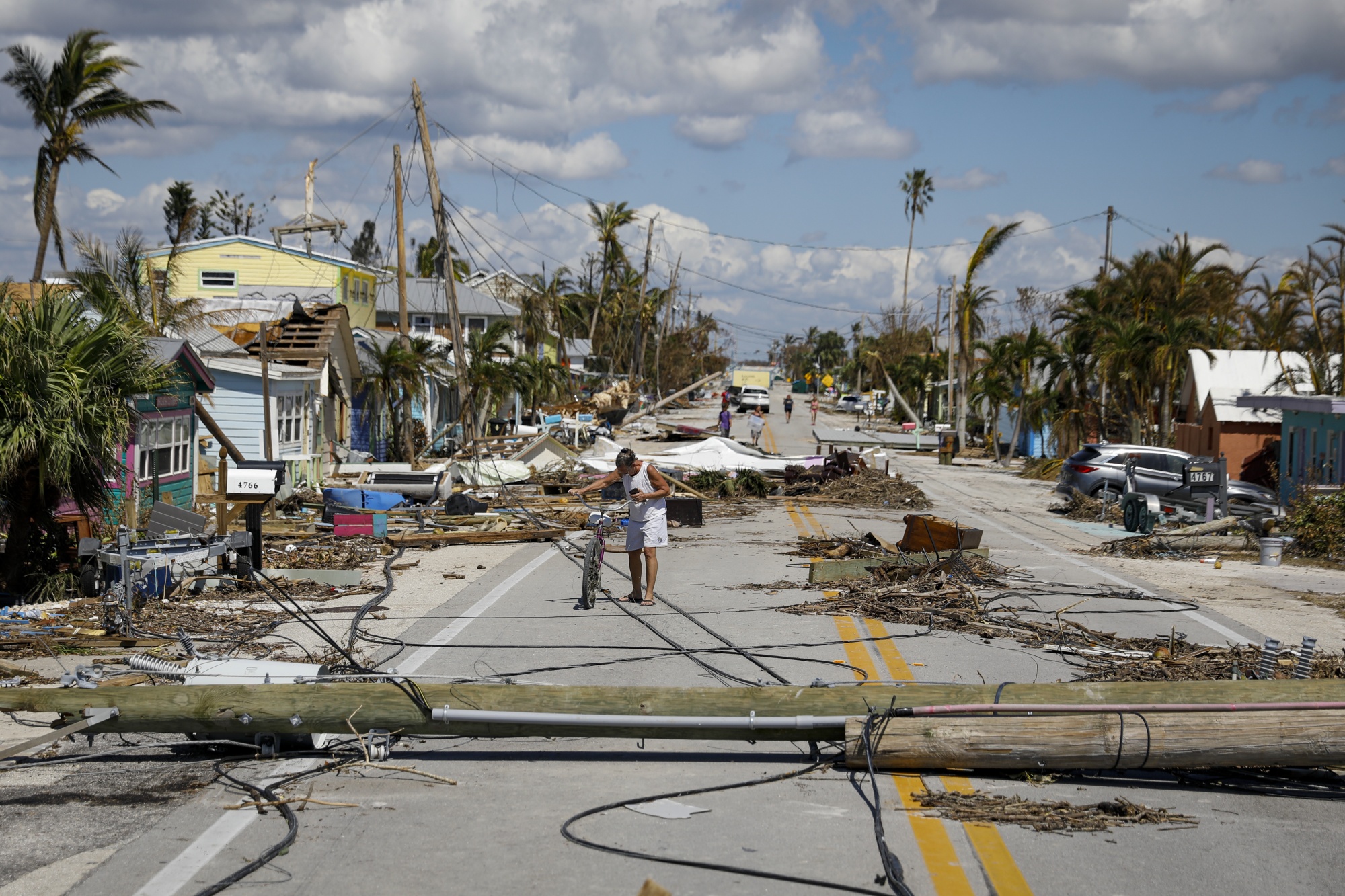 飓风伊恩过后的Matlacha Isles, 佛罗里达的Pine Island Road,拍摄于10月1日。