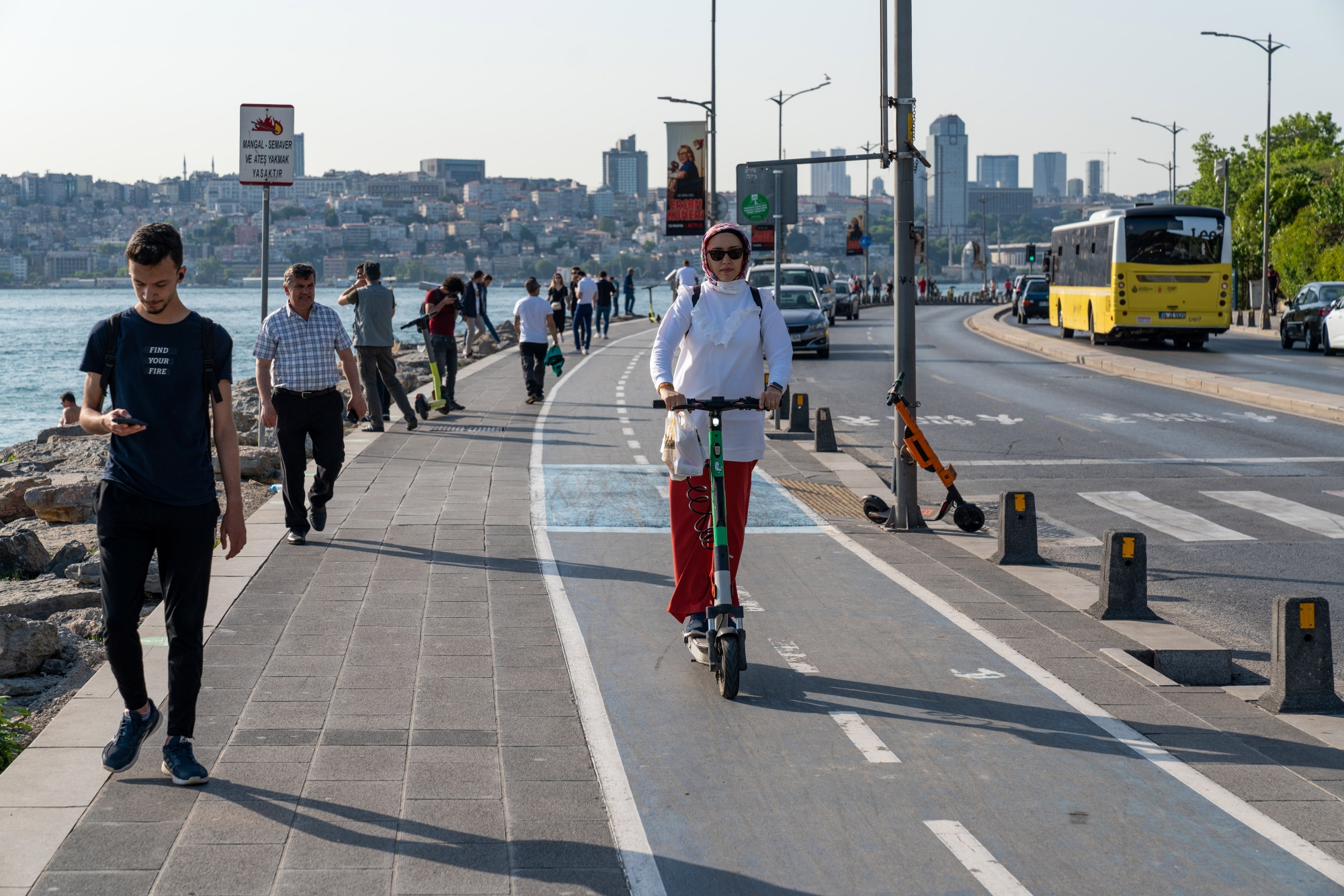 这样的交通挑战使伊斯坦布尔准备跟随世界其他城市的步伐,拥抱一种不同的交通工具:电动滑板车。这些小型车辆可以比自行车更快地爬坡,途中不排放碳,而在一个空气污染相关健康问题占据土耳其整体医疗费用27%的城市区域。