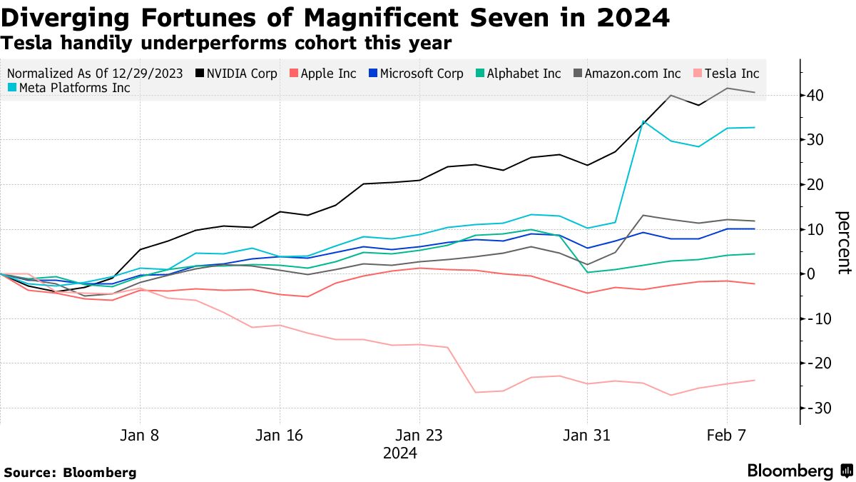 英伟达是纳斯达克100指数今年表现最好的成分股,就像在2023年一样,当时股价翻了两番。这支股票在所谓的“七巨头”中是表现最出色的,主要是因为由于人工智能需求的增加,其销售和利润出现了最显著的增长。