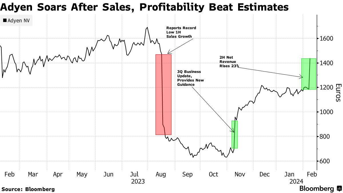 Adyen在去年收入出现创纪录的放缓后,经历了一次股票崩盘后,重新崛起。从那时起,这家支付巨头一直试图通过在11月公布新的增长目标并承诺提供季度交易更新来重获投资者信心,更加透明。