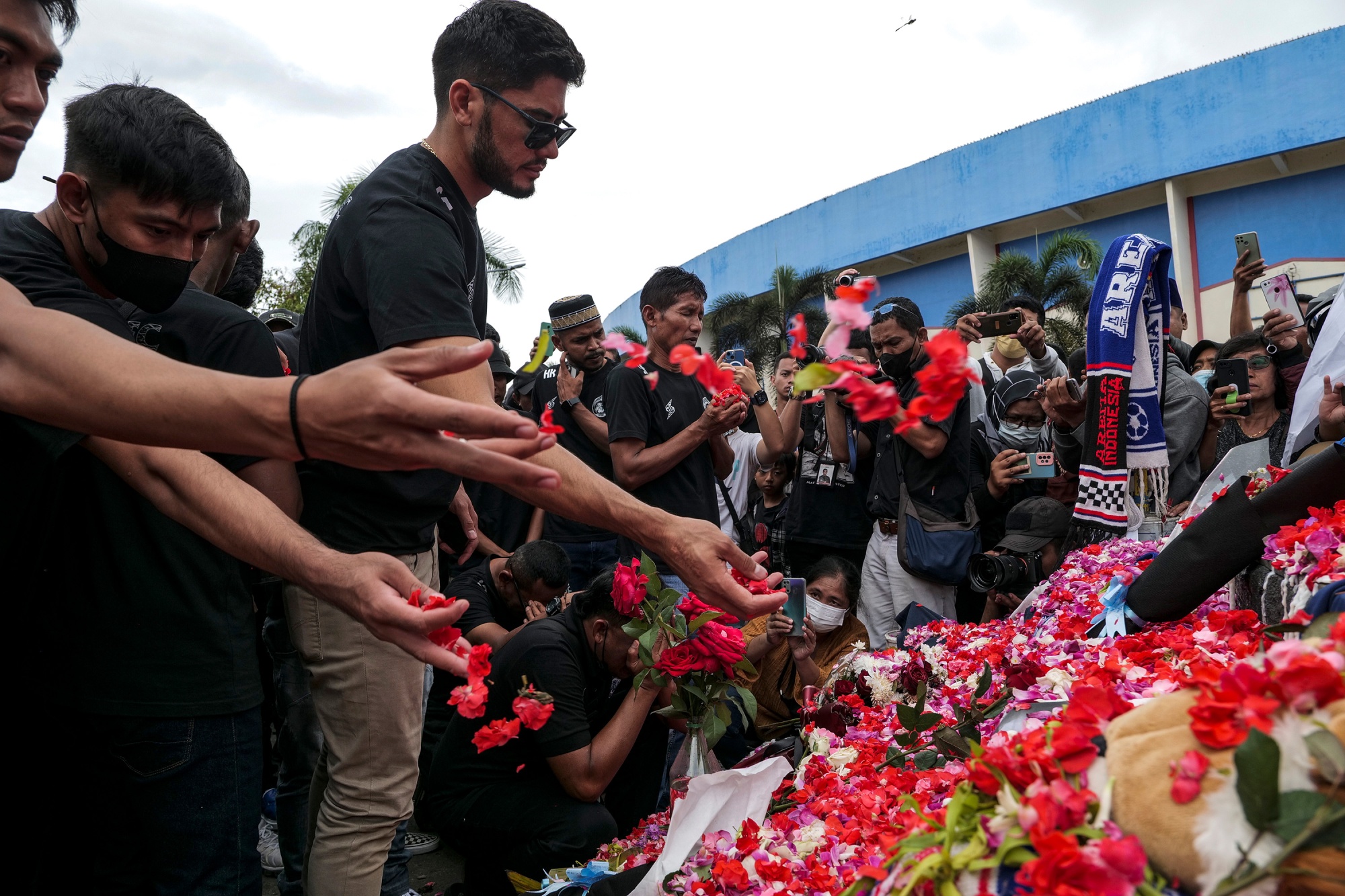 阿雷马足球俱乐部的球员和官员向10月3日在印度尼西亚马朗康朱鲁汉体育场外发生踩踏事件的受害者表示哀悼。