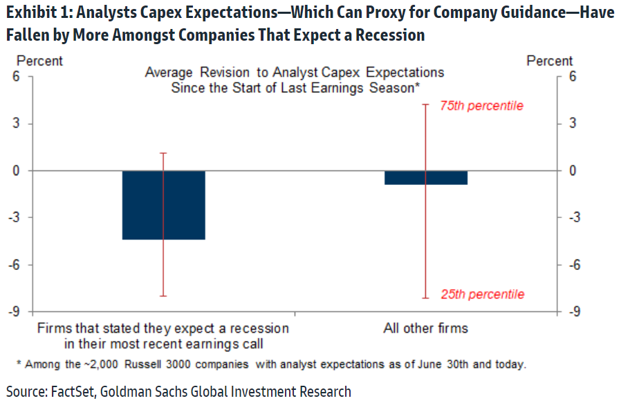 一个变得更加明显的痛点是资本支出不振。高管对衰退风险的感知导致公司领导层对预期资本支出增长的预期下调了3-4个百分点,由贾恩·哈齐乌斯领导的高盛经济学家在一项对财报电话会议记录的研究中发现。
