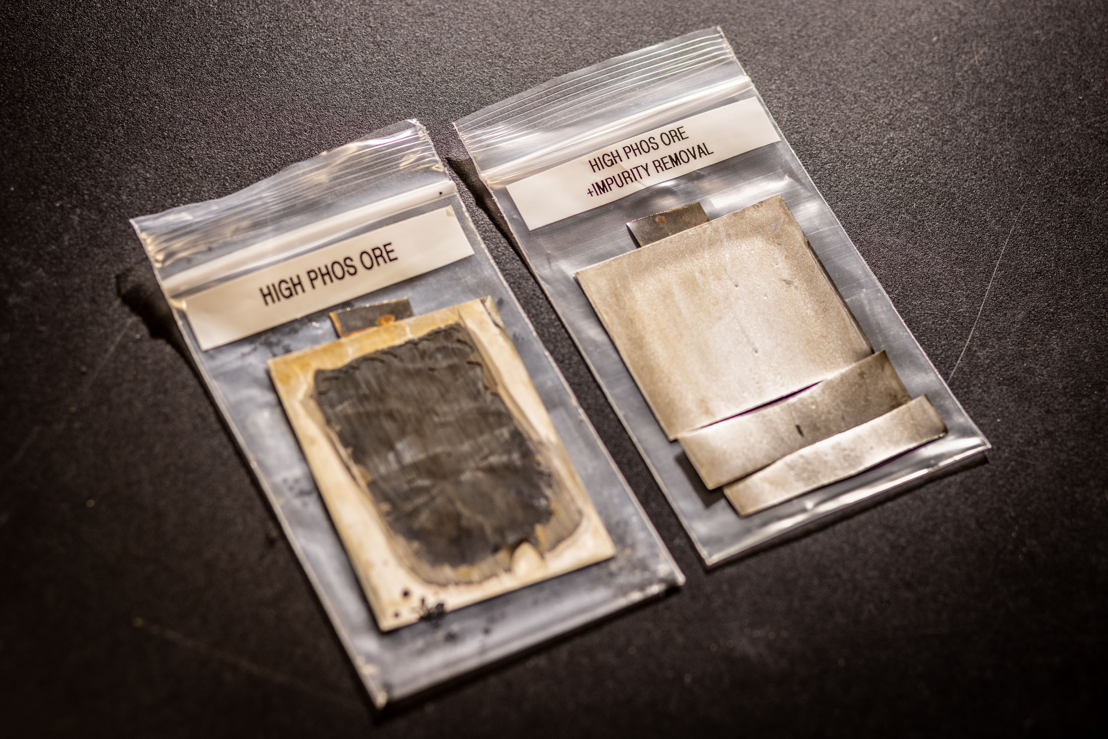 使用带有或不带杂质的铁矿石在Electra制造的铁板的示例。摄影师:Chet Strange/Bloomberg另一个优势可能是将Electra工厂建在靠近铁矿石矿山的地方,这些地方通常远离城市中心,靠近可以建设可再生能源的土地。Electra工厂可以在现场将矿石加工成铁并去除所有杂质,大大减少需要运送到钢铁厂的材料量,进一步降低成本。