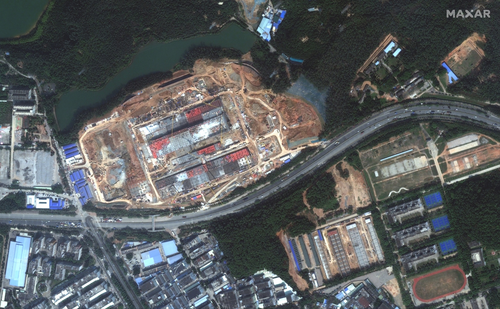 三月拍摄的彭新卫IC制造芯片工厂卫星图像显示建设进展。摄影师:Maxar Technologies/Bloomberg### 彭博观点精选