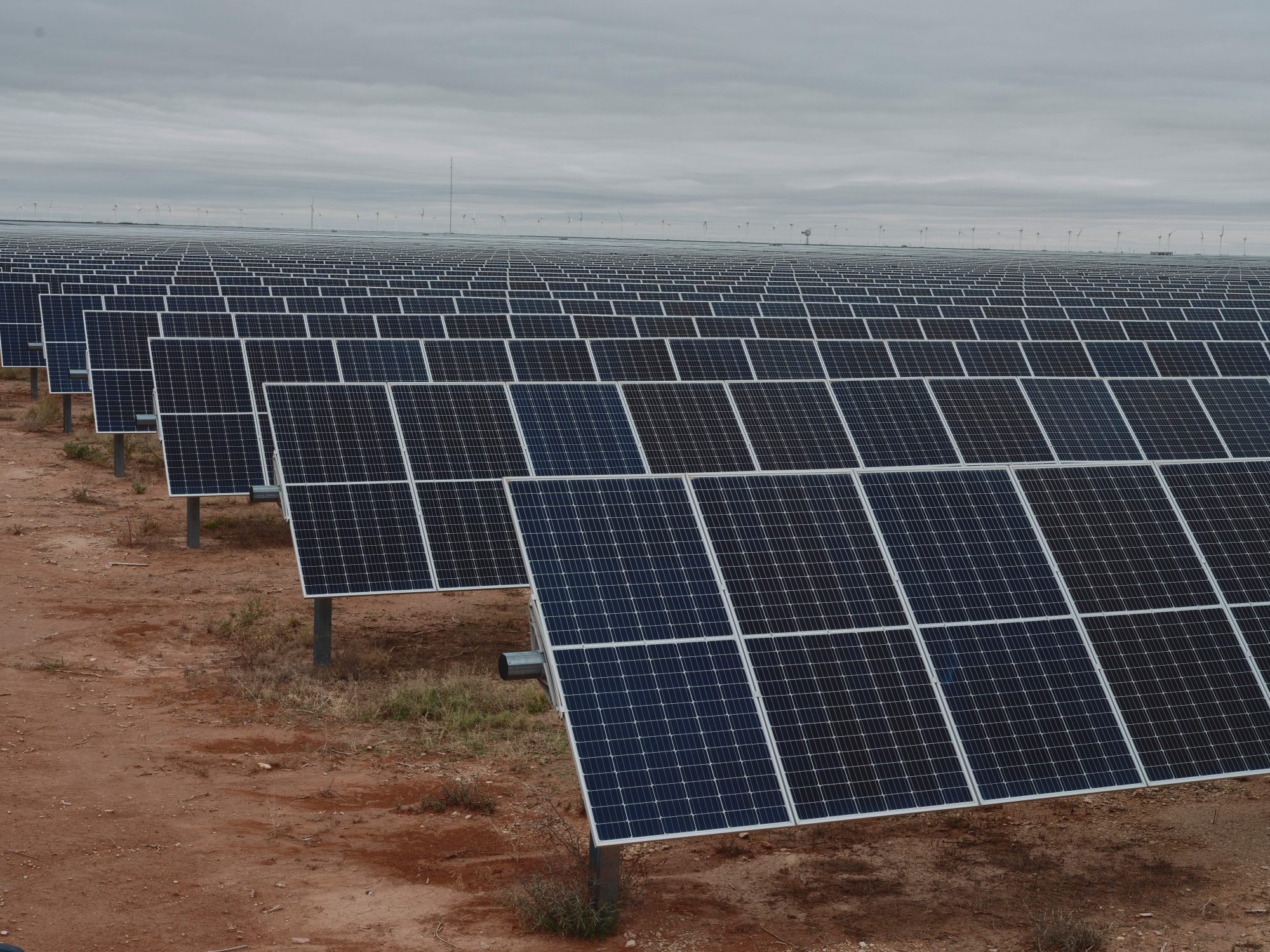 德克萨斯州麦卡米附近的一个太阳能发电厂。