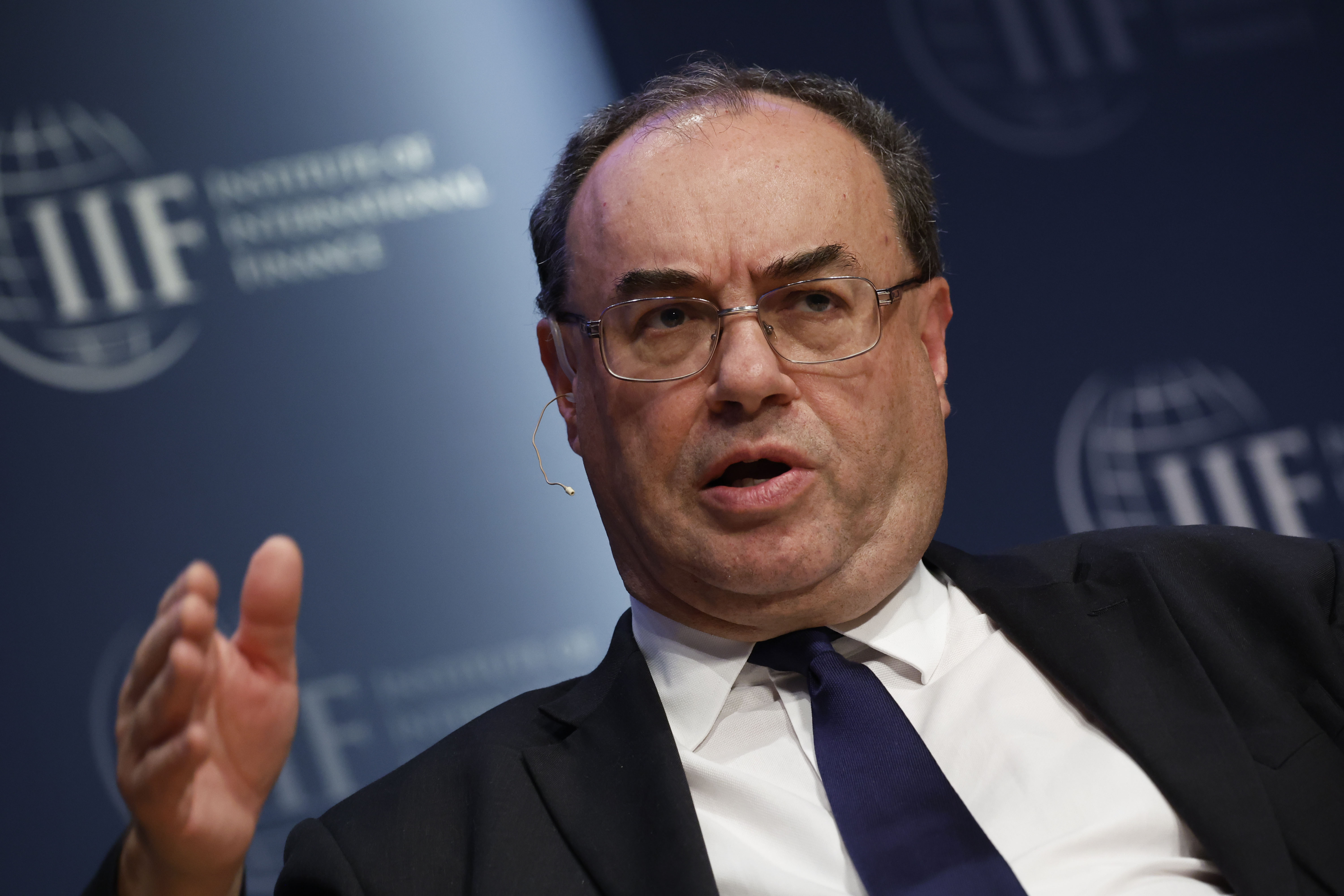 英国央行行长安德鲁·贝利在华盛顿DC举行的国际金融研究所年度会员大会上发言