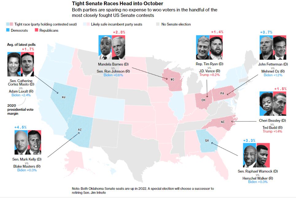 消息来源:美国参议院,截至10月12日的RealClearPolitics民意调查平均值,彭博研究 点击 这里 听昨天的Twitter Space,记者们讨论了周一俄罗斯对乌克兰入侵进行导弹袭击后的最新情况。如果你喜欢这份通讯,请点击 这里 注册Balance of Power。