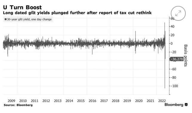 唐宁街的官员们现在正在考虑如何扭转在预算中宣布的其他减税措施(英镑和英国国债因听到这一消息而飙升)。这还包括搁置取消45便士所得税率(一位保守党捐助人今天在这里描述最初废除它的决定为“疯狂。”)当天早些时候,外交大臣詹姆斯·克莱弗利拒绝承诺按计划冻结公司税(提醒:首相昨天刚刚抨击了增加公司税的决定)。