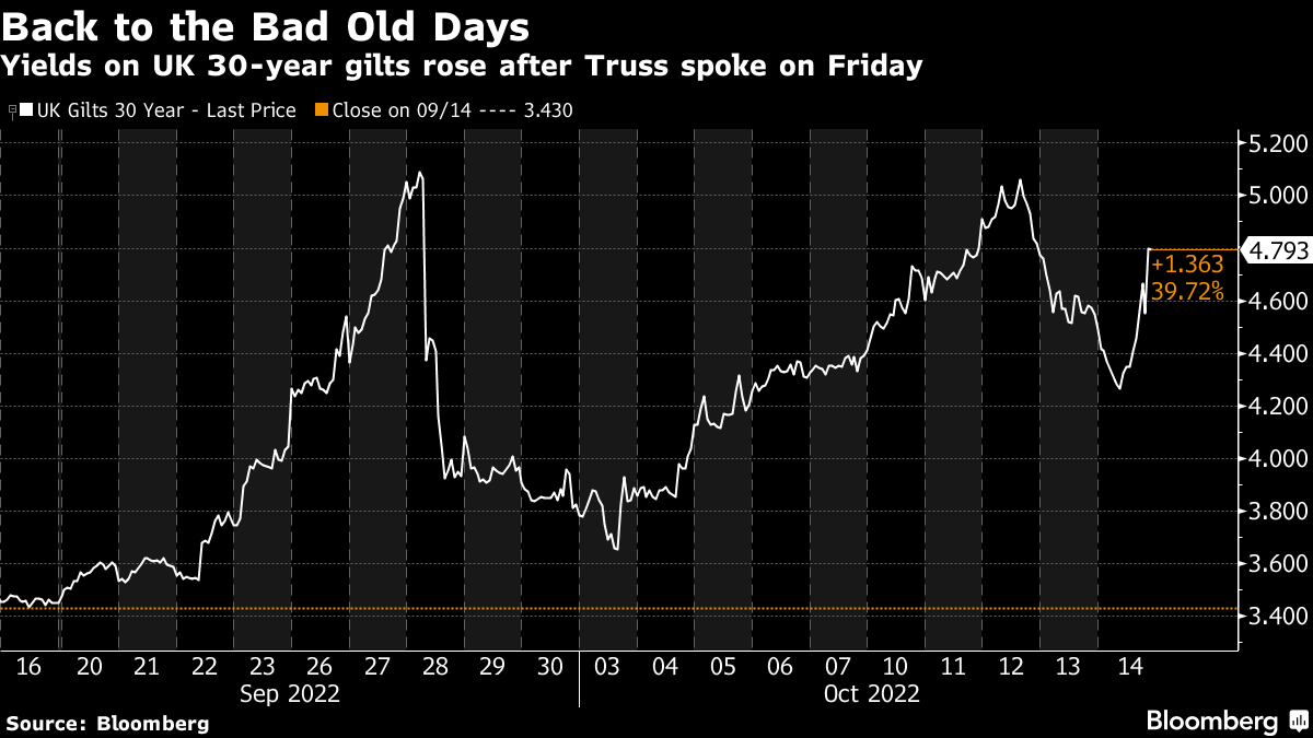 这里的关键评判来自债券市场,他们在上个月那个臭名昭著的“迷你预算”之后失去了对英国财政政策的信心。在扭转企业税政策之后,特拉斯希望他们能松一口气。但尽管削减了180亿英镑的减税账单,30年期政府债券收益率上升,在她的讲话后 — 导致利率和抵押贷款利率上升。