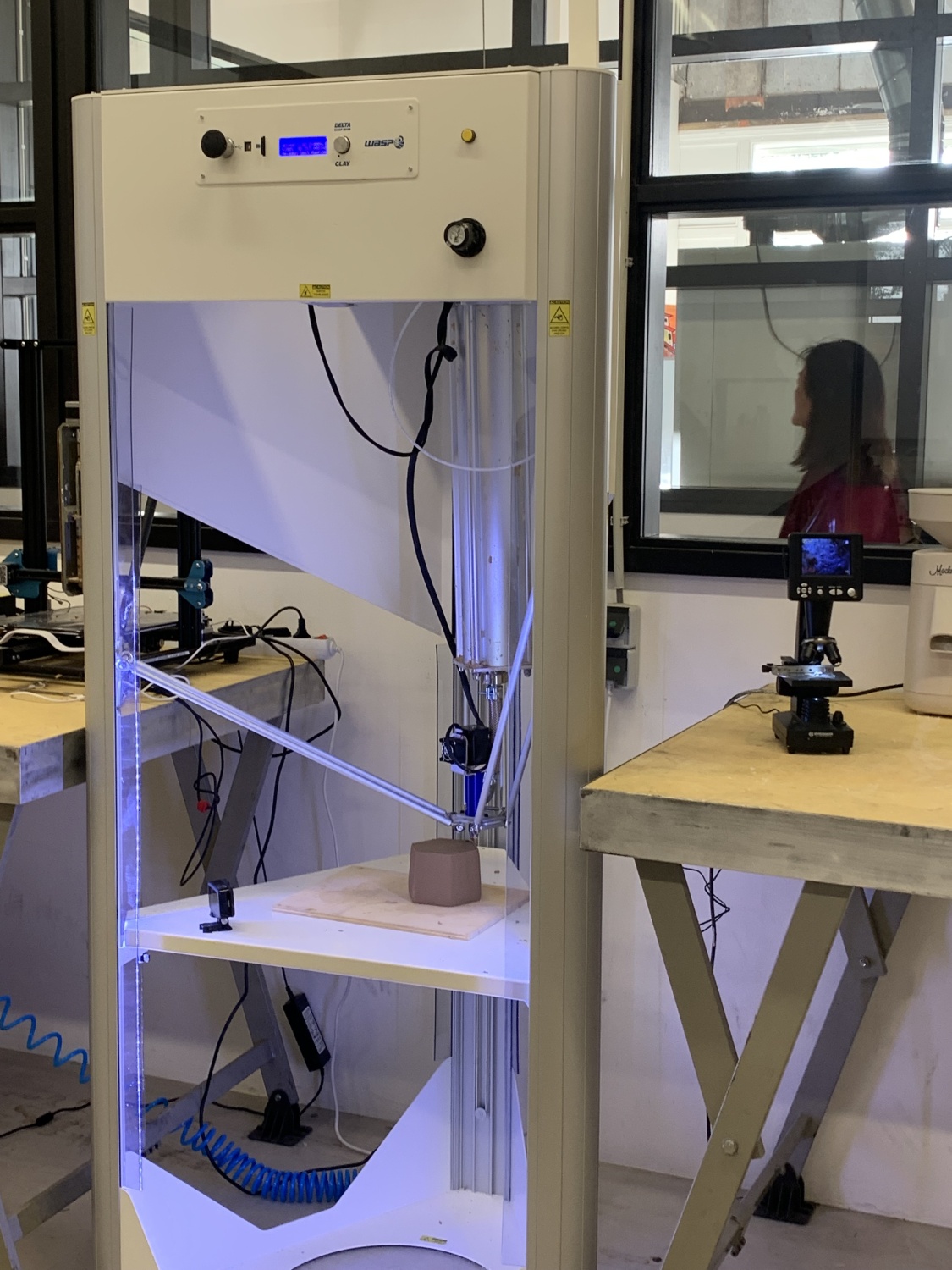 一台3D打印机轰鸣着,不断地堆叠着主要由碎橄榄核制成的溶液,直到它变成一个坚固的立方体。