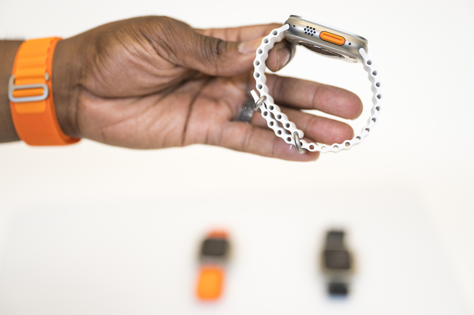苹果手表 Ultra。摄影师:尼克·库里/彭博社寻找新的苹果手表 Ultra 手环祝你好运。 订购这款新款的客户正面临数周的发货延迟,而这可能更多与新一套手环有关,而不是设备本身。如果你正在寻找任何尺寸或颜色的 Trail Loop 或大号橙色 Alpine Loop,祝你好运。Trail Loop 在黄色或蓝色的任何尺寸都要等到11月才发货,而黑色的中号/大号手环要等到圣诞节前一周才发货。橙色的 Alpine Loop 目前要等到11月中旬才能发货。