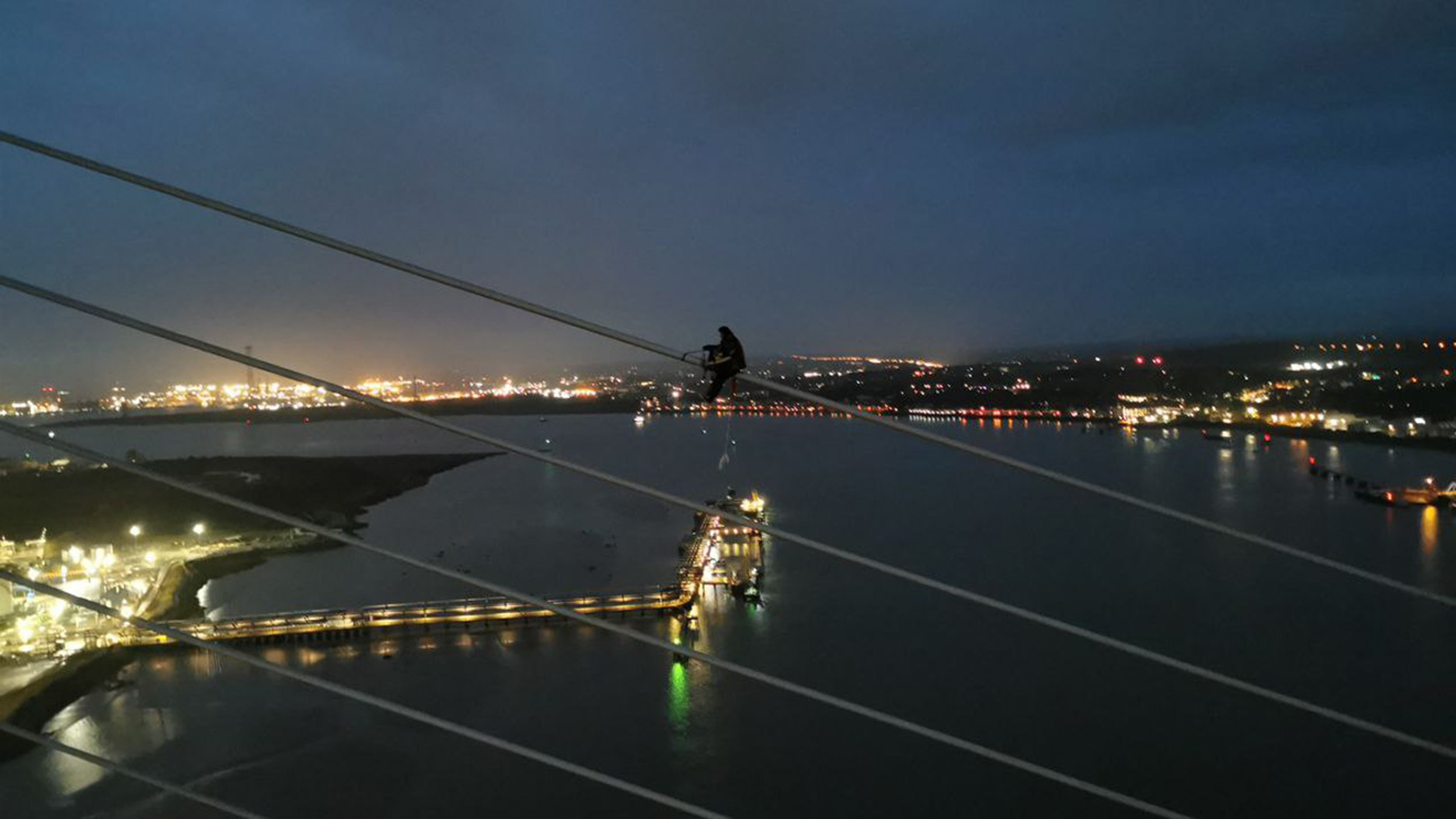 一名“刚停止石油”活动人士于10月17日攀登了达特福德跨越的伊丽莎白二世桥。
