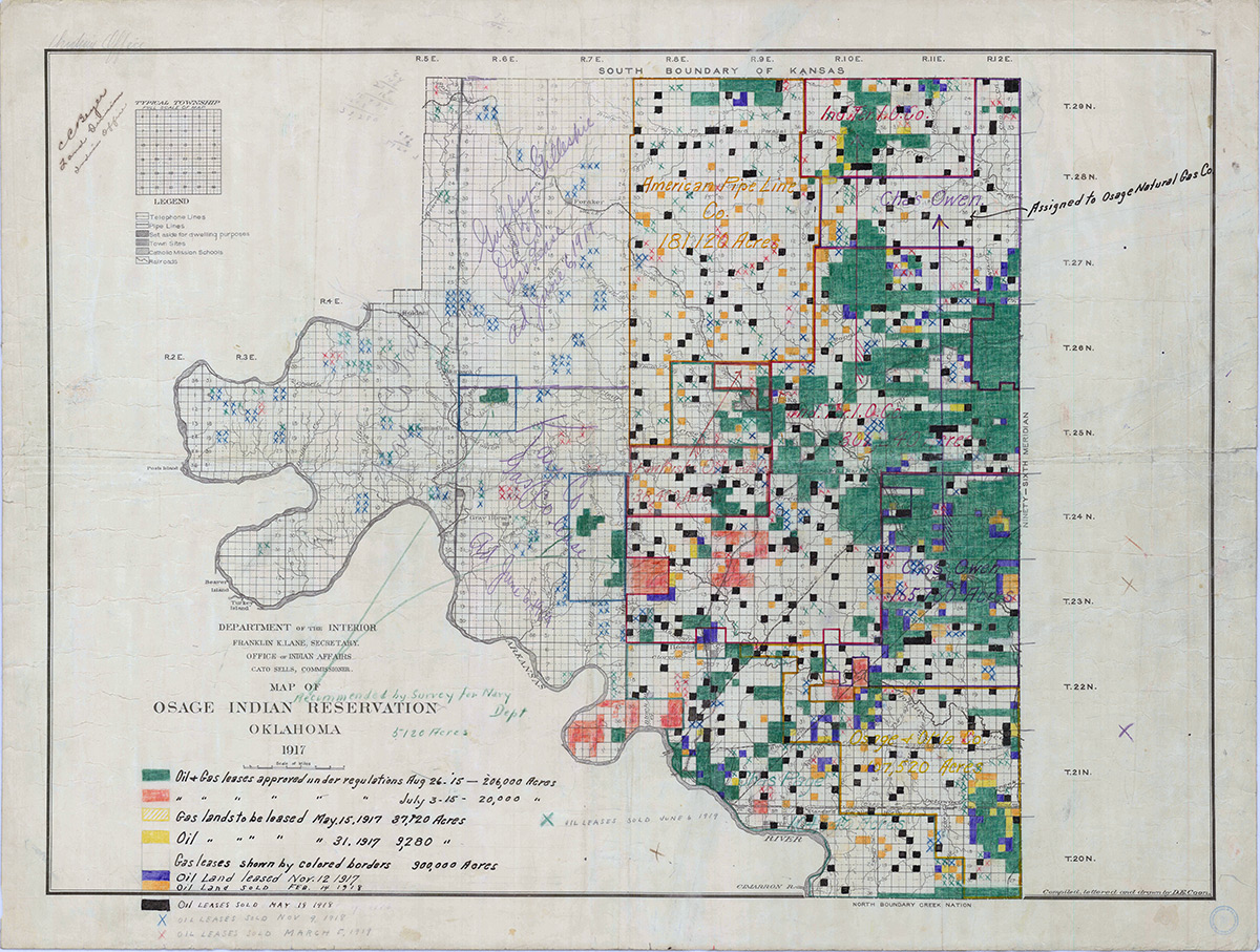 1917年奥萨奇族地图显示当时的石油和矿产租约。摄影师:HUM Images/Getty Images