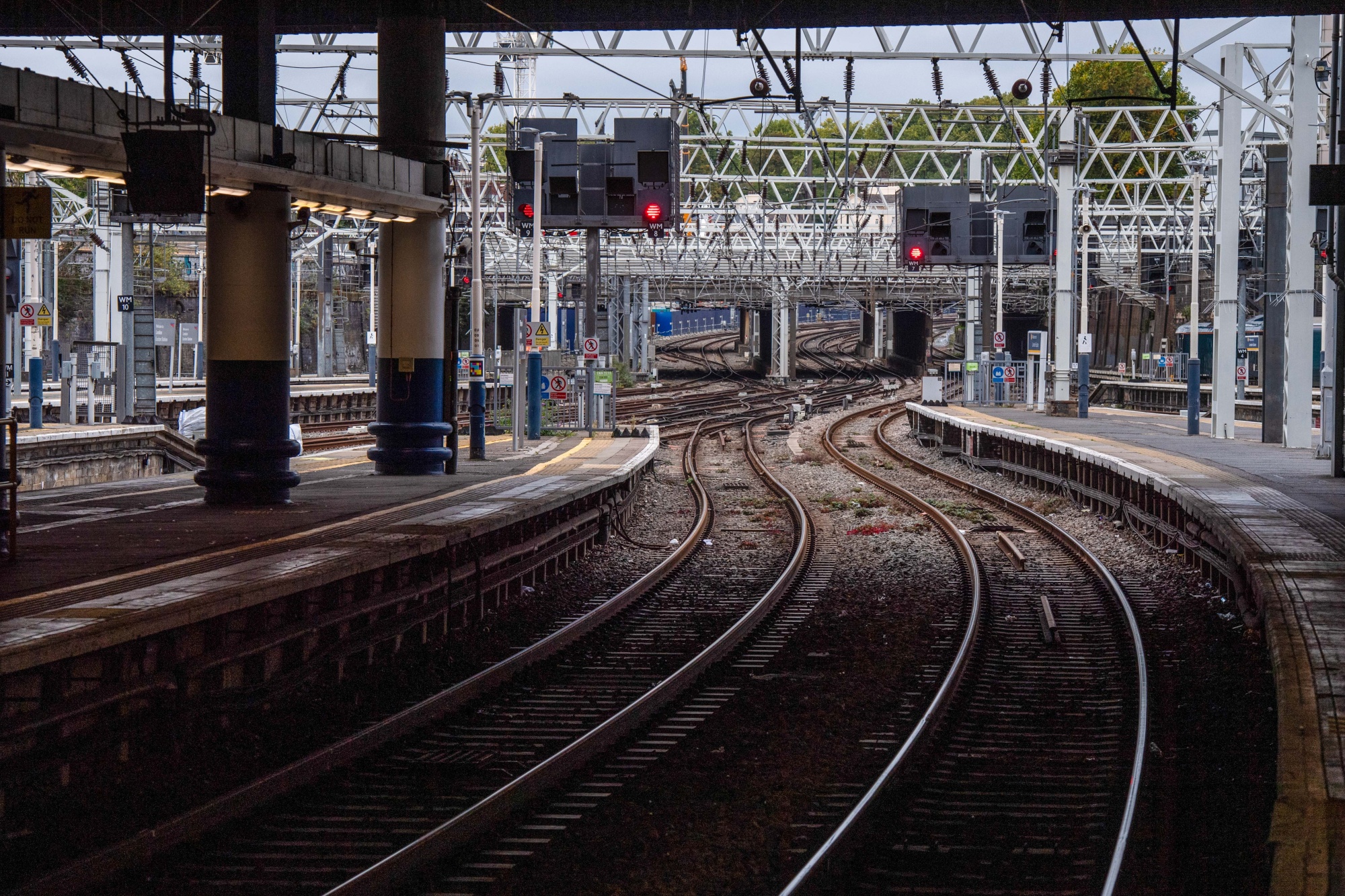 伦敦尤斯顿火车站的空旷站台。