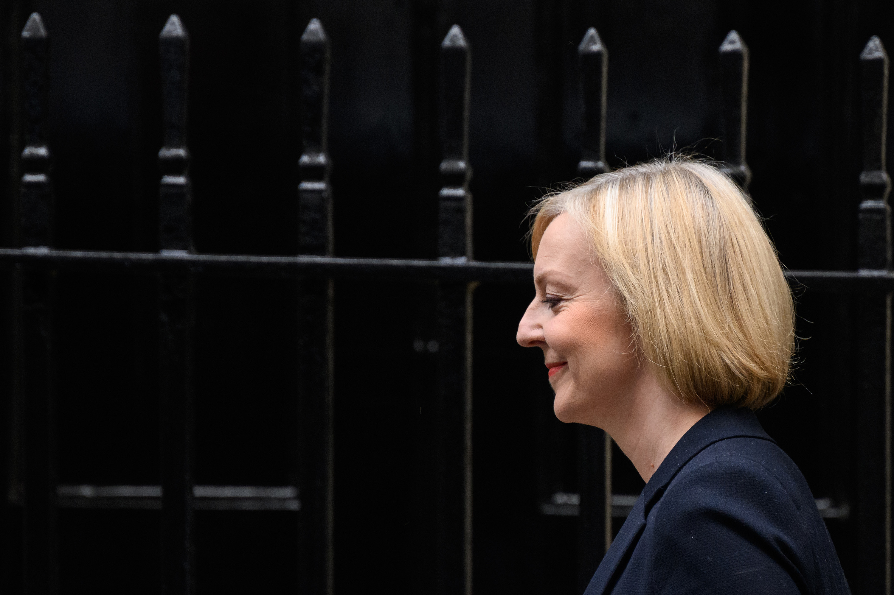 利兹·特拉斯(Liz Truss)10月19日从伦敦唐宁街10号前往下议院。