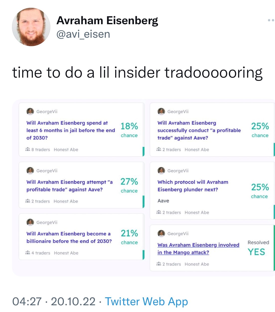 “交易员对世界有一种固有的反社会观念,他们试图找到套利机会,因此直到直接违法为止的任何行为都被视为公平竞争,”DeFi借贷市场Maple Finance首席执行官Sid Powell告诉我。
