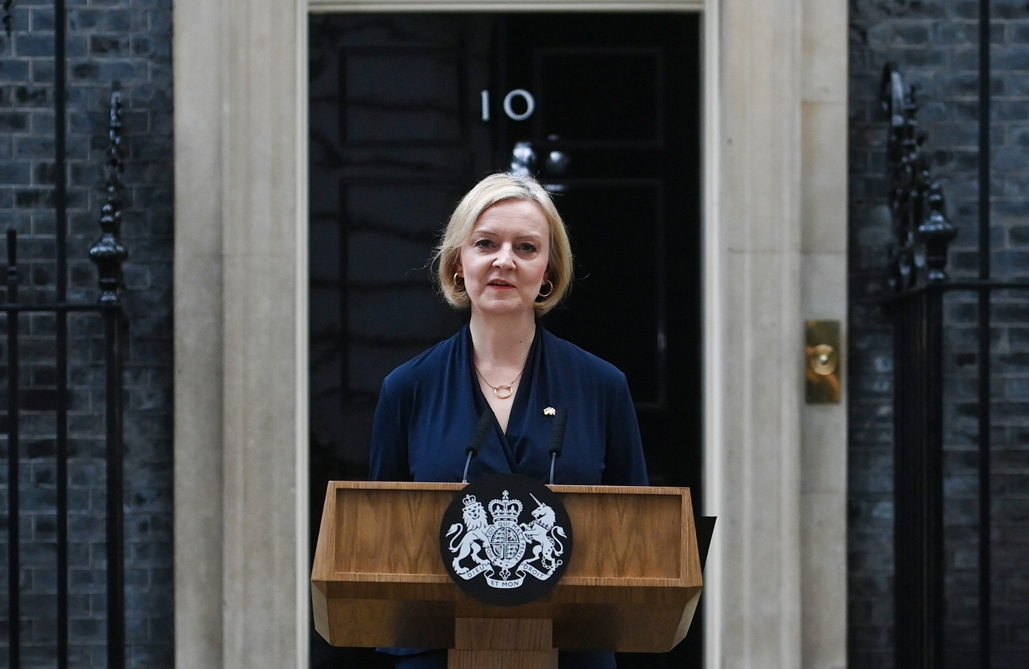 Liz Truss在10 Downing Street外发布辞职声明,时间为10月20日。