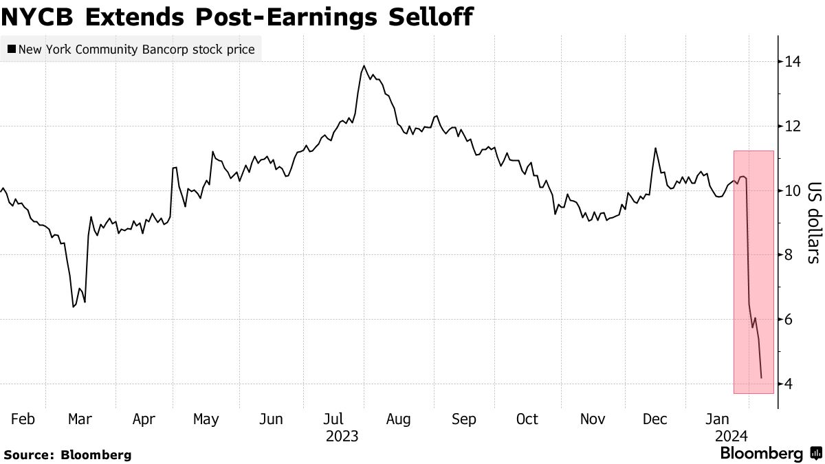 纽约社区银行连续第五天第四次下跌两位数,延续了上周因意外季度亏损和削减股息而引发的暴跌。