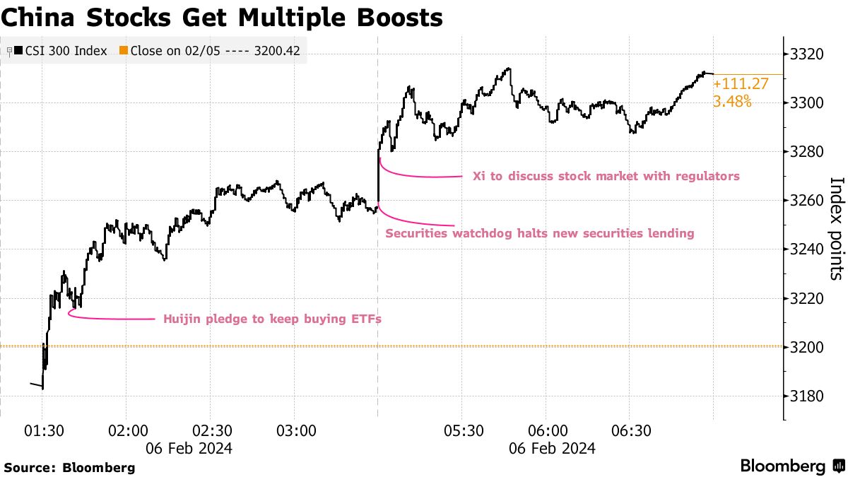 有关习会议的报告紧随当天早些时候一系列支持性公告,包括中国政府在大型金融机构中持有股份的单位中央汇金投资有限公司承诺购买更多交易所交易基金。证券监管机构在后续评论中表示,将尽一切努力维持市场稳定运作。