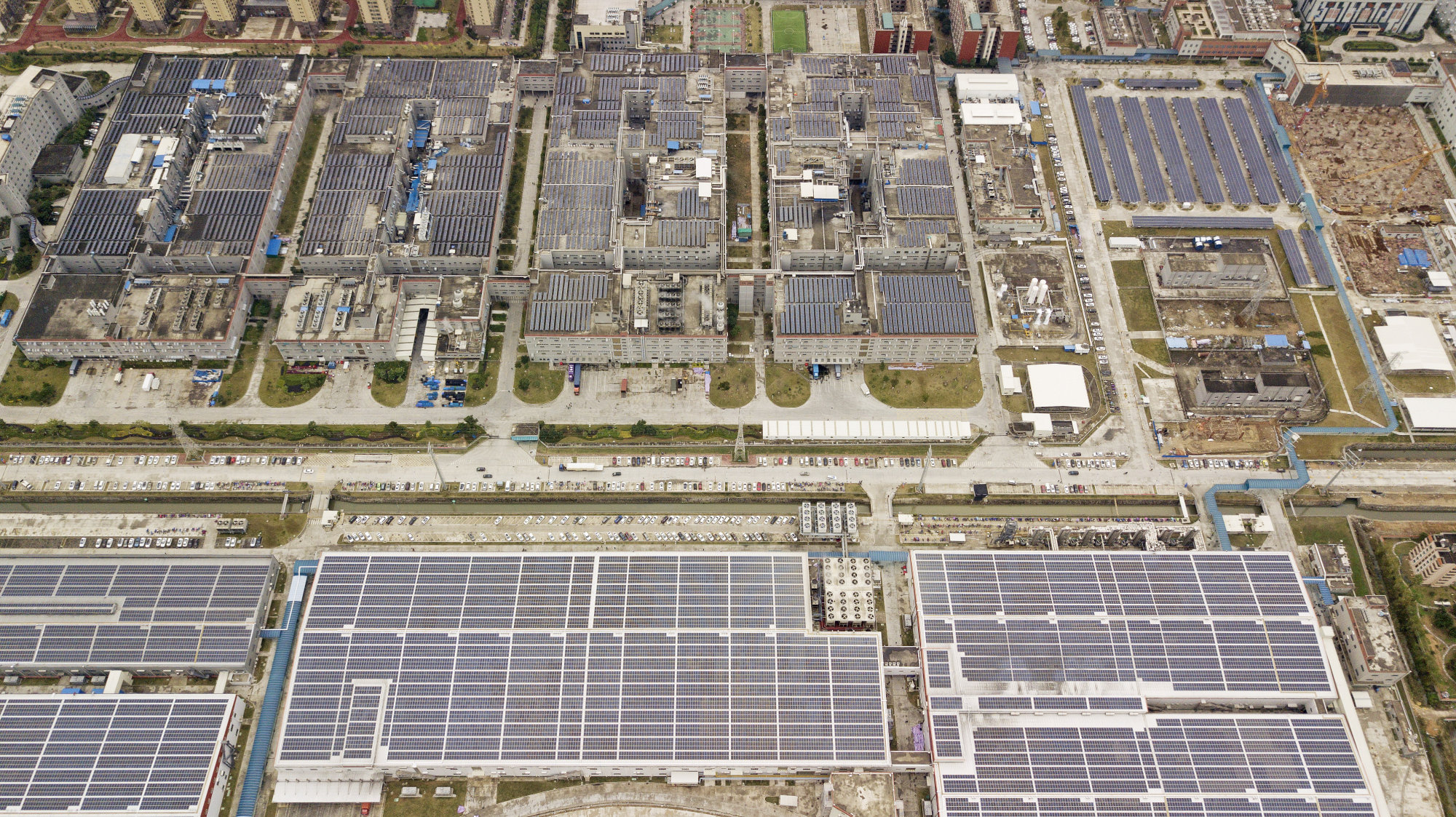 太阳能电池板出现在中国福建省宁德市的当代Amperex Technology Ltd.(CATL)总部和制造复合体的屋顶上,这是2018年1月29日拍摄的一张航拍照片。CATL已经向最大的电动汽车制造商销售最多的电池,这些制造商位于最大的电动汽车市场:中国。