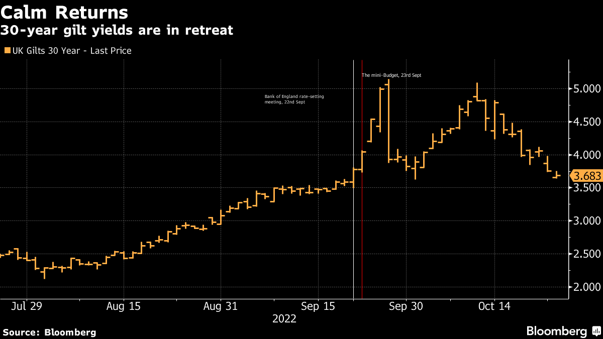 好消息是,缓解政治紧张局势和英格兰银行努力稳定市场的组合似乎奏效了。 30年期英国国债的收益率(基本上是利率)现在已经回到了前任财政大臣Kwasi Kwarteng不幸的迷你预算之前的水平。
