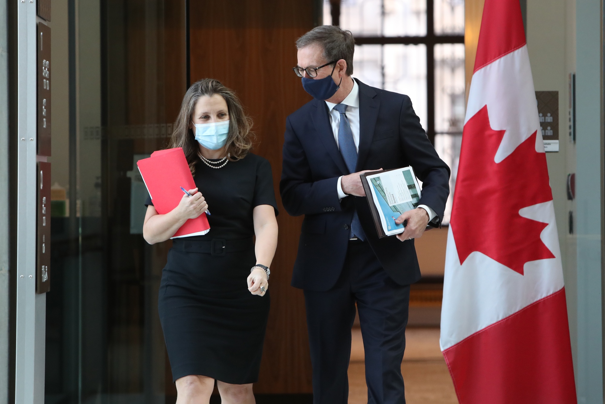克里斯蒂娅·弗里兰和蒂夫·麦克莱姆于2021年12月13日抵达渥太华举行的新闻发布会。摄影师:大卫·卡瓦伊/彭博社财政部长克里斯蒂娅·弗里兰在主要的左翼反对党加入保守党批评加拿大央行业绩之后,捍卫了加拿大央行的独立性。