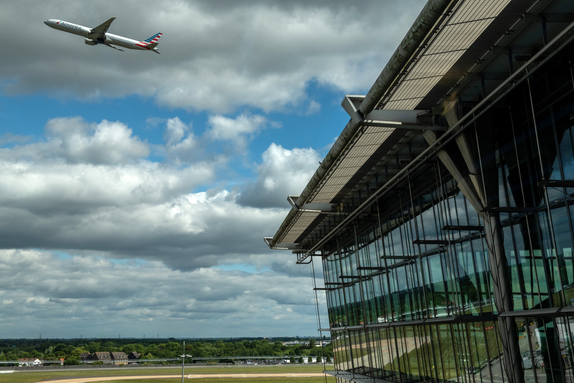 一架客机从伦敦希思罗机场起飞。